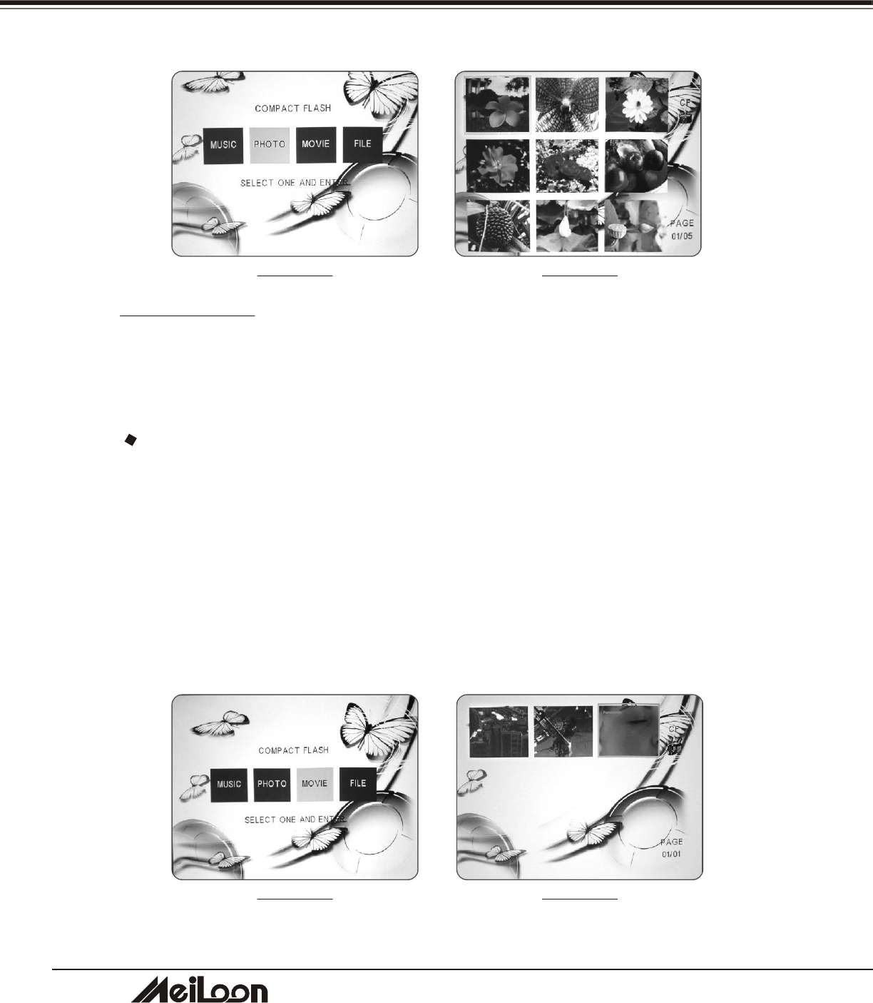 1. Press the "Right" or "Left" button to select the "PHOTO" folder. (Drawing 22)