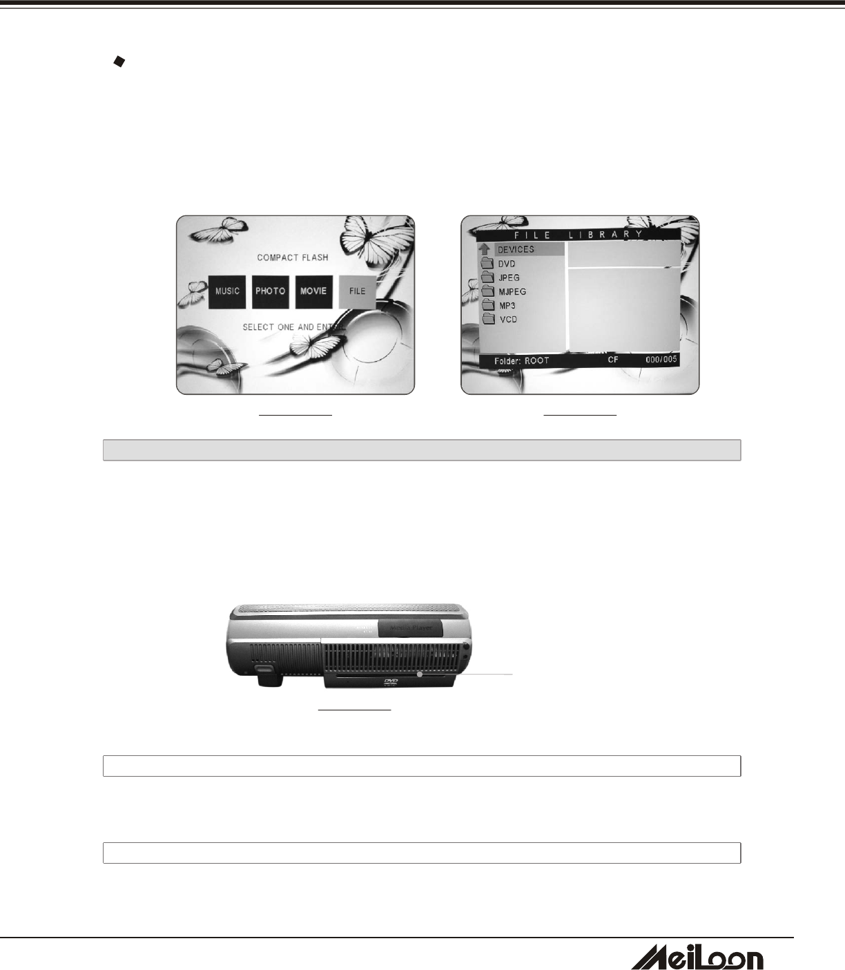 Insert your disc into the DVD Player's slot on the Projector. (Drawing 28)