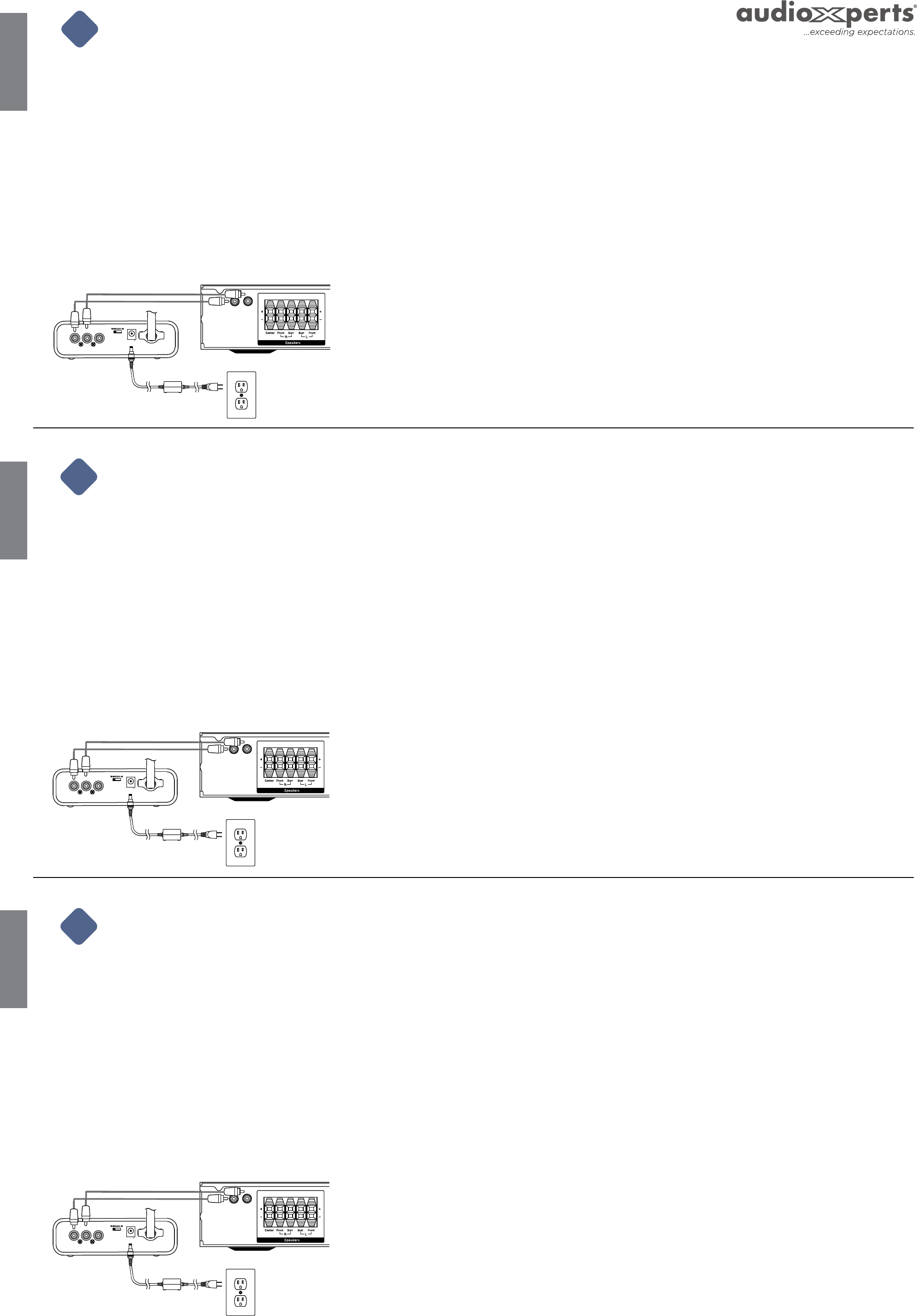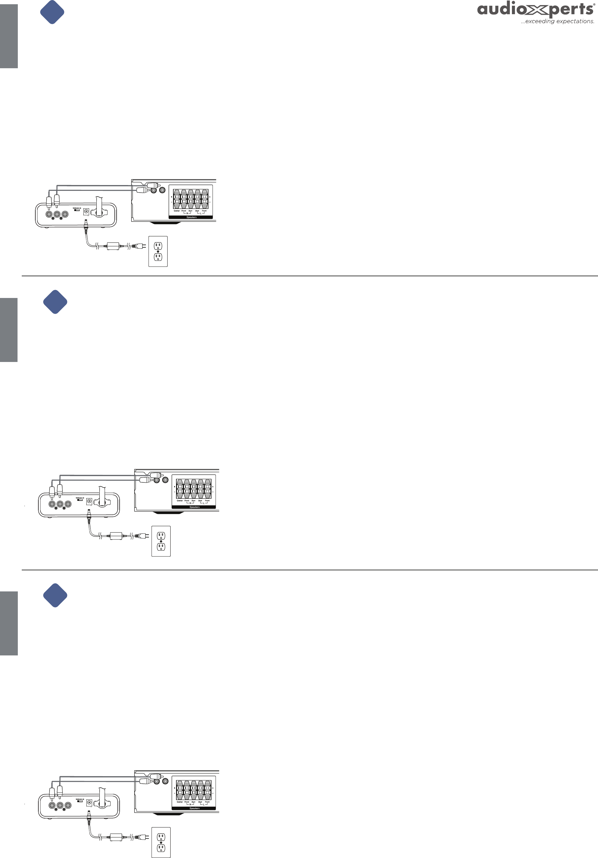 an auxiliary power outlet on an AV receiver or directly to an electrical outlet. Plug