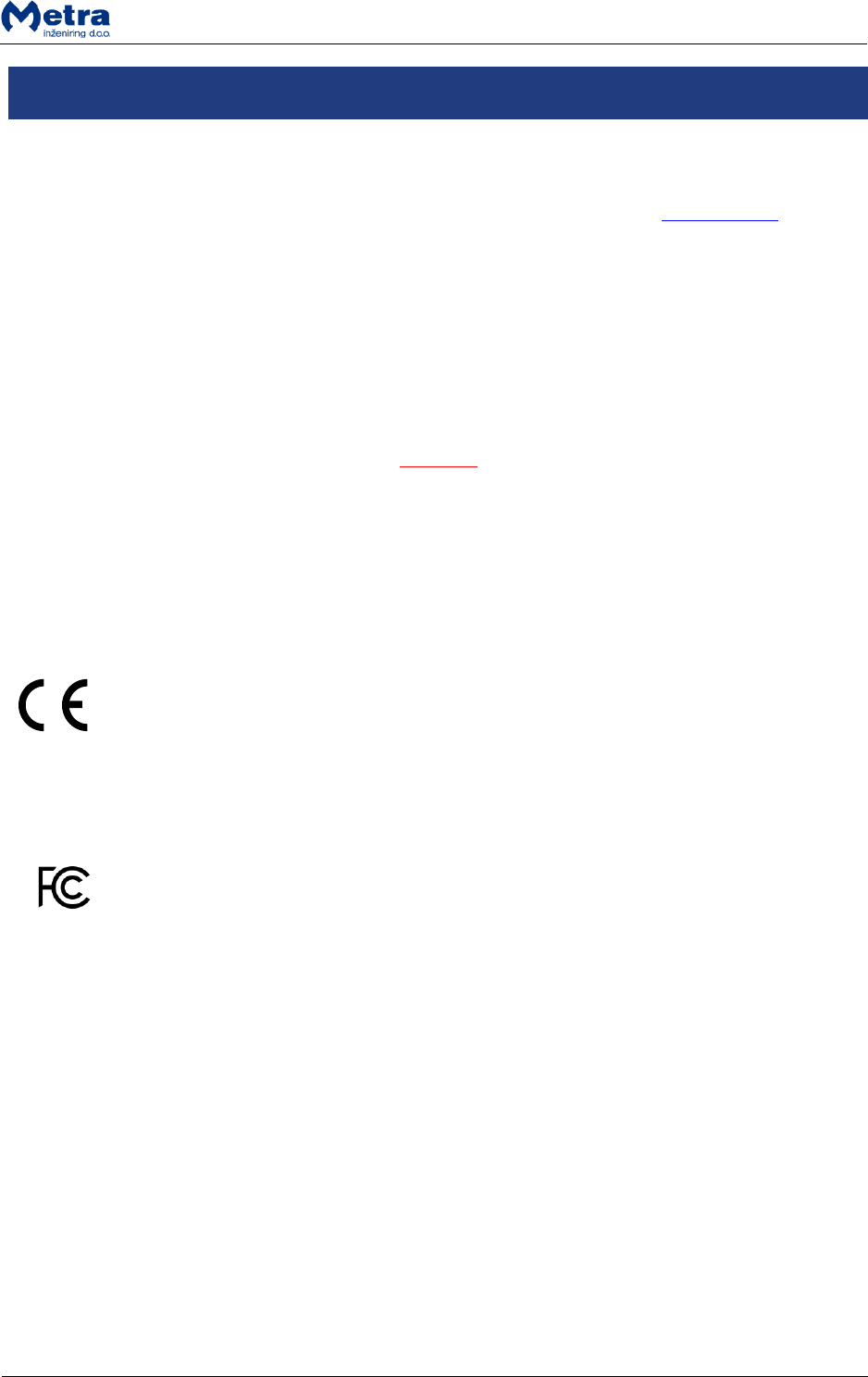 the user's authority to operate the equipment. Metra inženiring d.o.o. is responsible for product’s