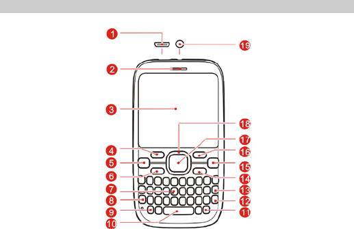 1 Charger/USB jack 8 Fn key 15 Ending key