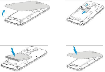 1. Open battery cover 2. Install SIM & memory card