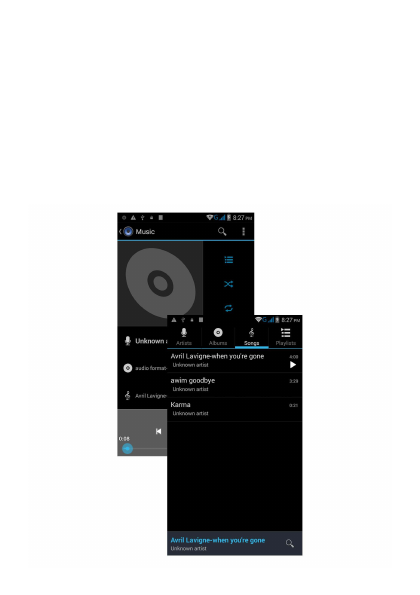 sound effects and 4 categorizing, i.e. Artists, Albums,