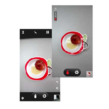 between cameras and switch between the functions by
