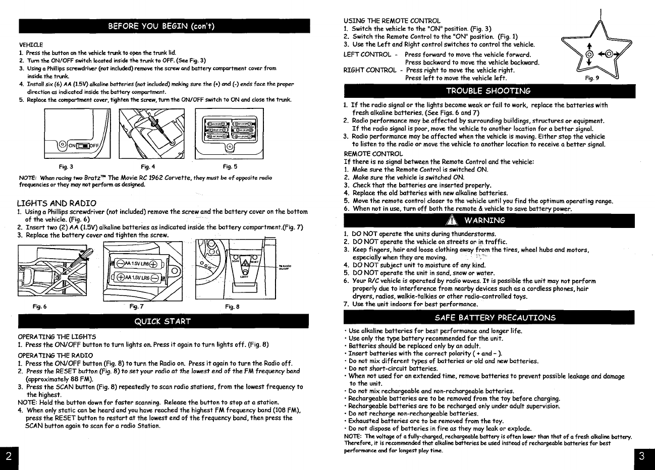 MGA Entertainment (HK) Ltd. Bratz The Movie RC 1962 Corvette - 49MHz Page 1