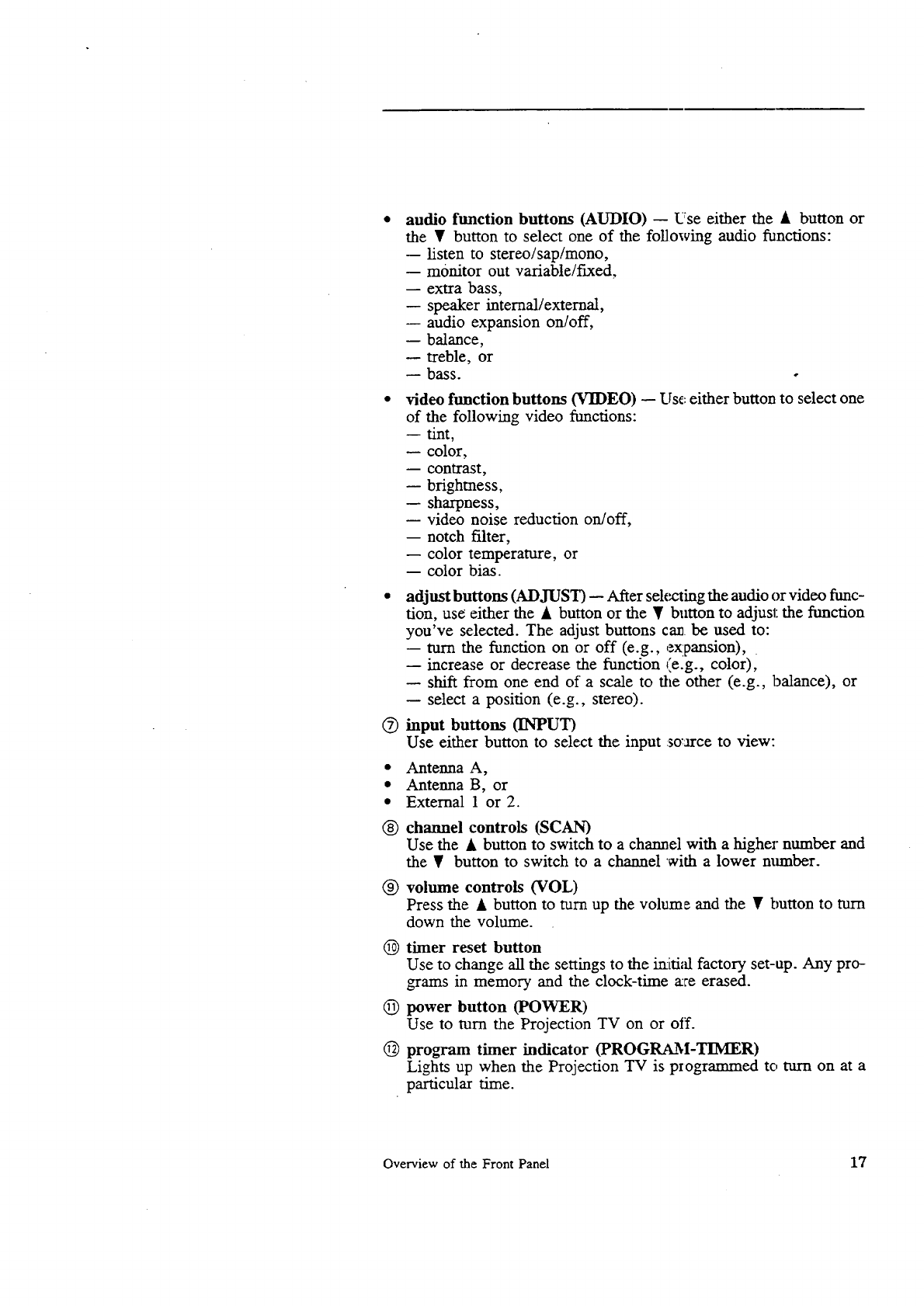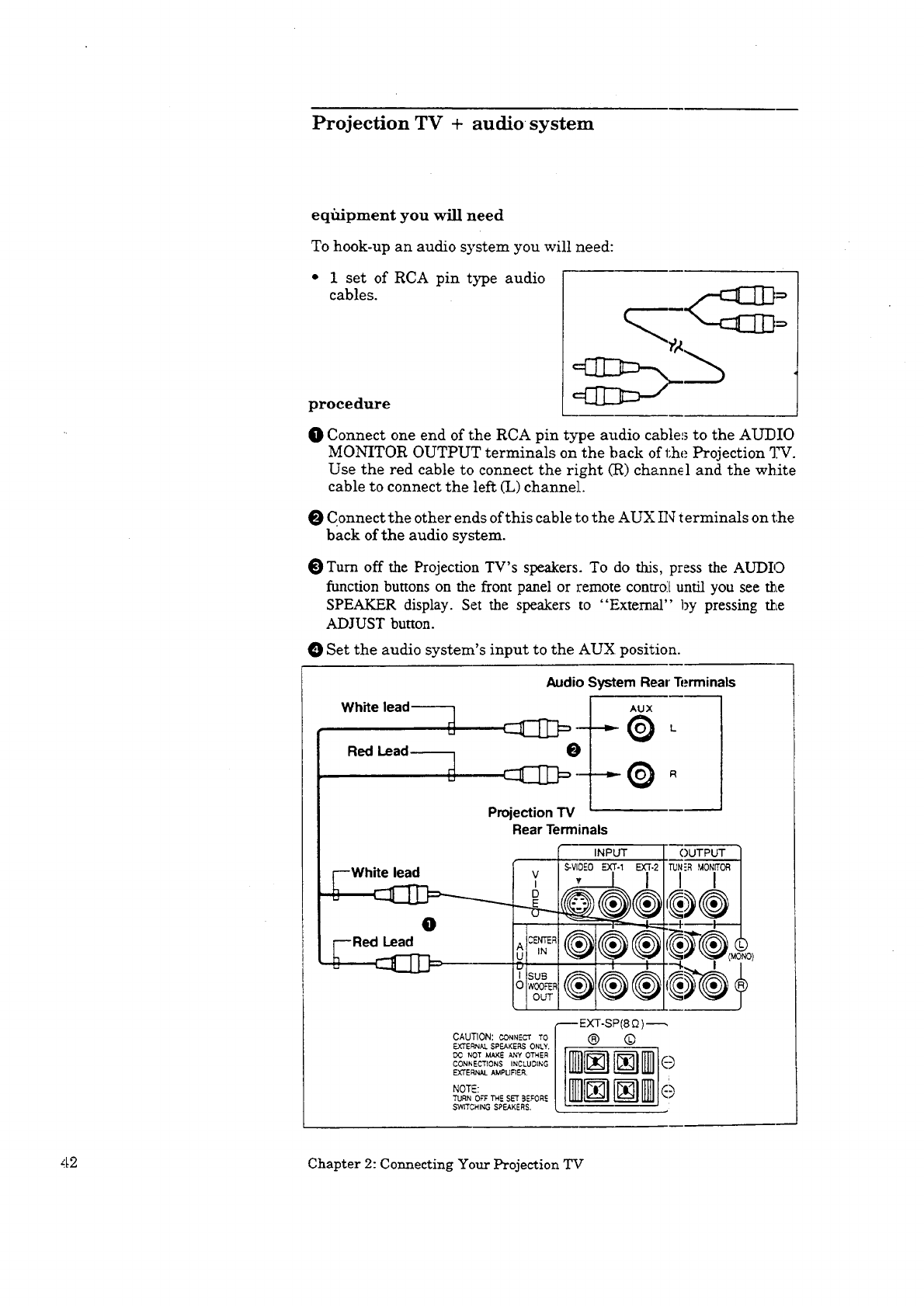 Projecuon TV + audio system ............................................ 42