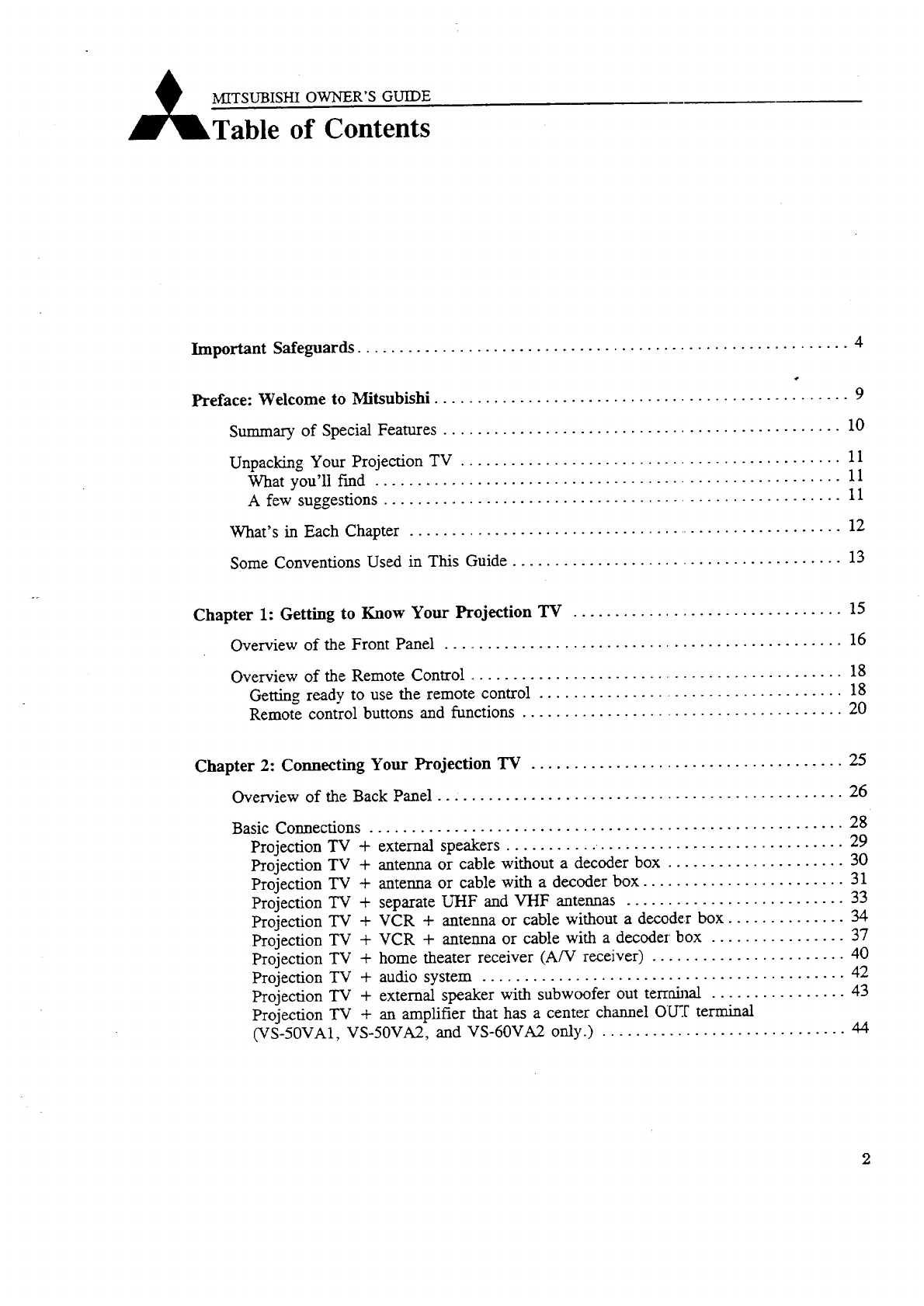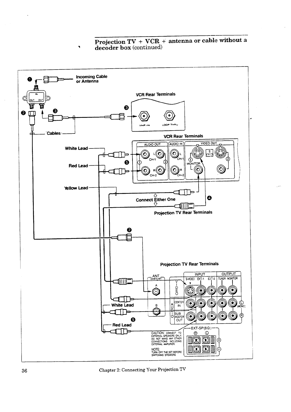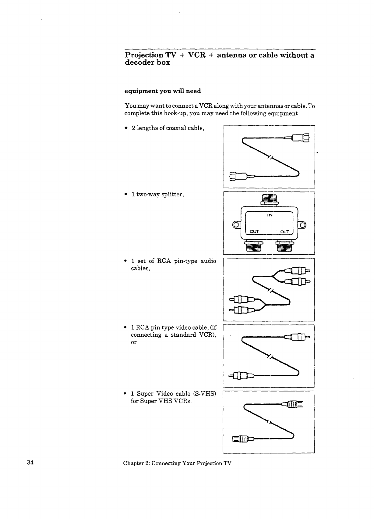 Projection TV + VCR + antenna or cable without a decoder box .............. 34