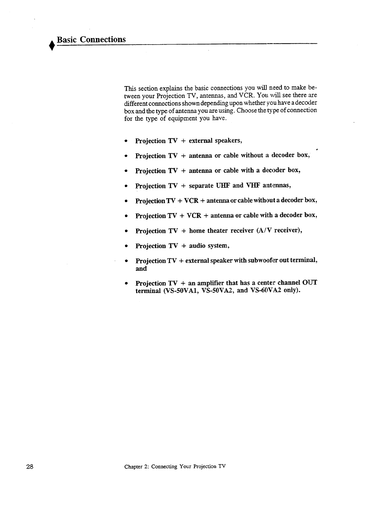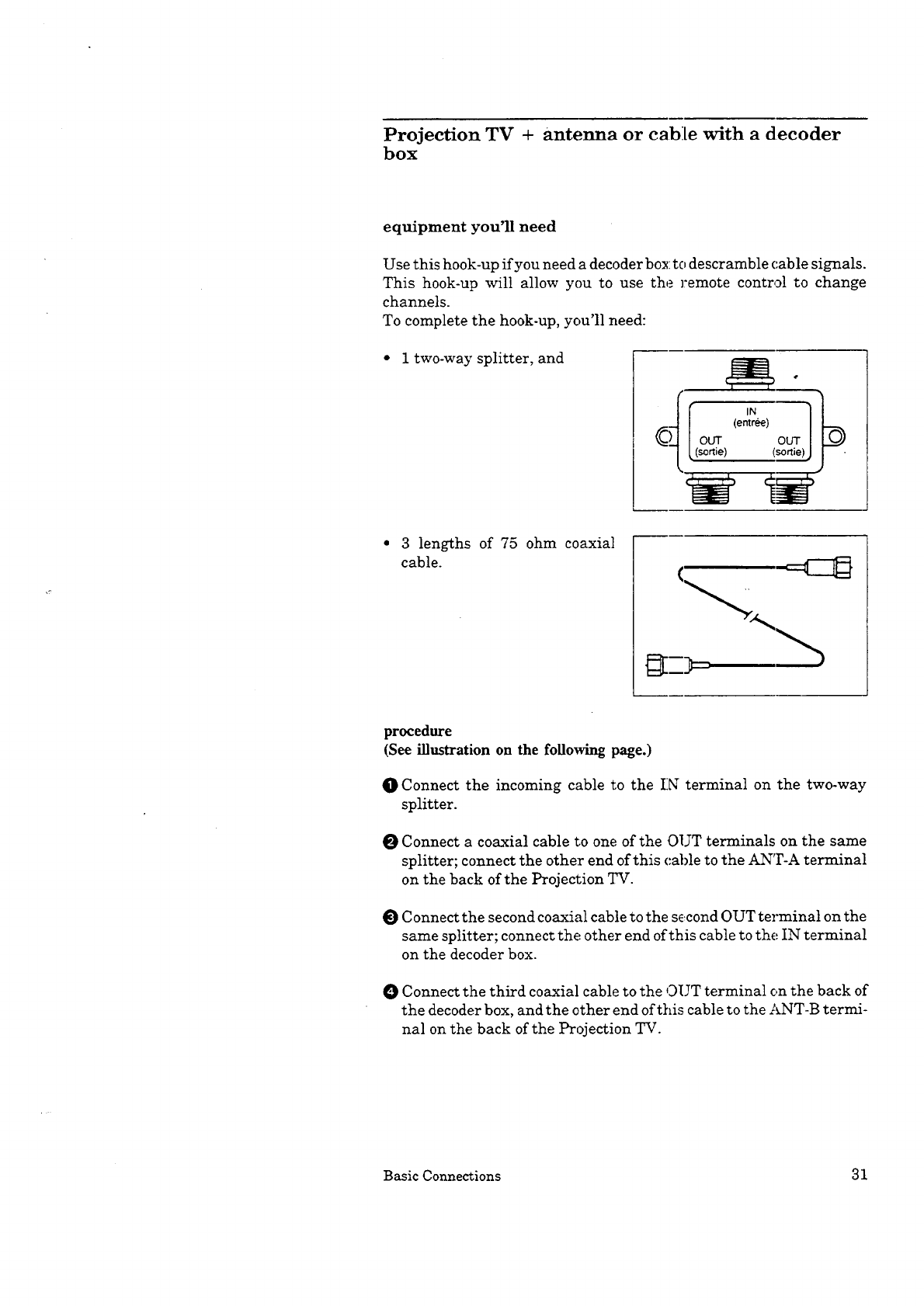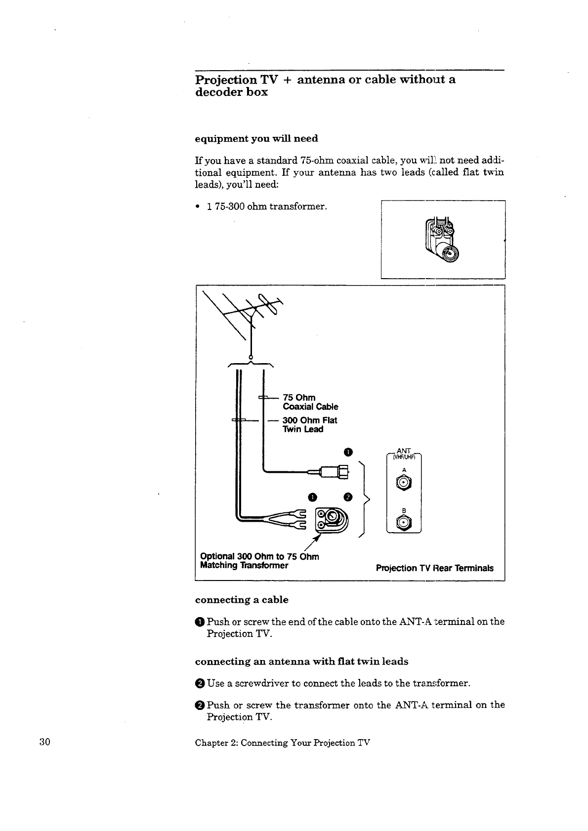 Projection TV + VCR + antenna or cable without a decoder box .............. 34