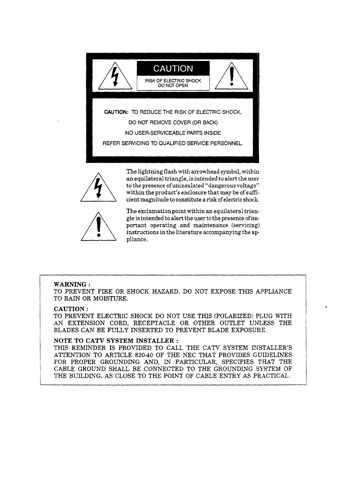 NOTE TO CATV SYSTEM INSTALLER :