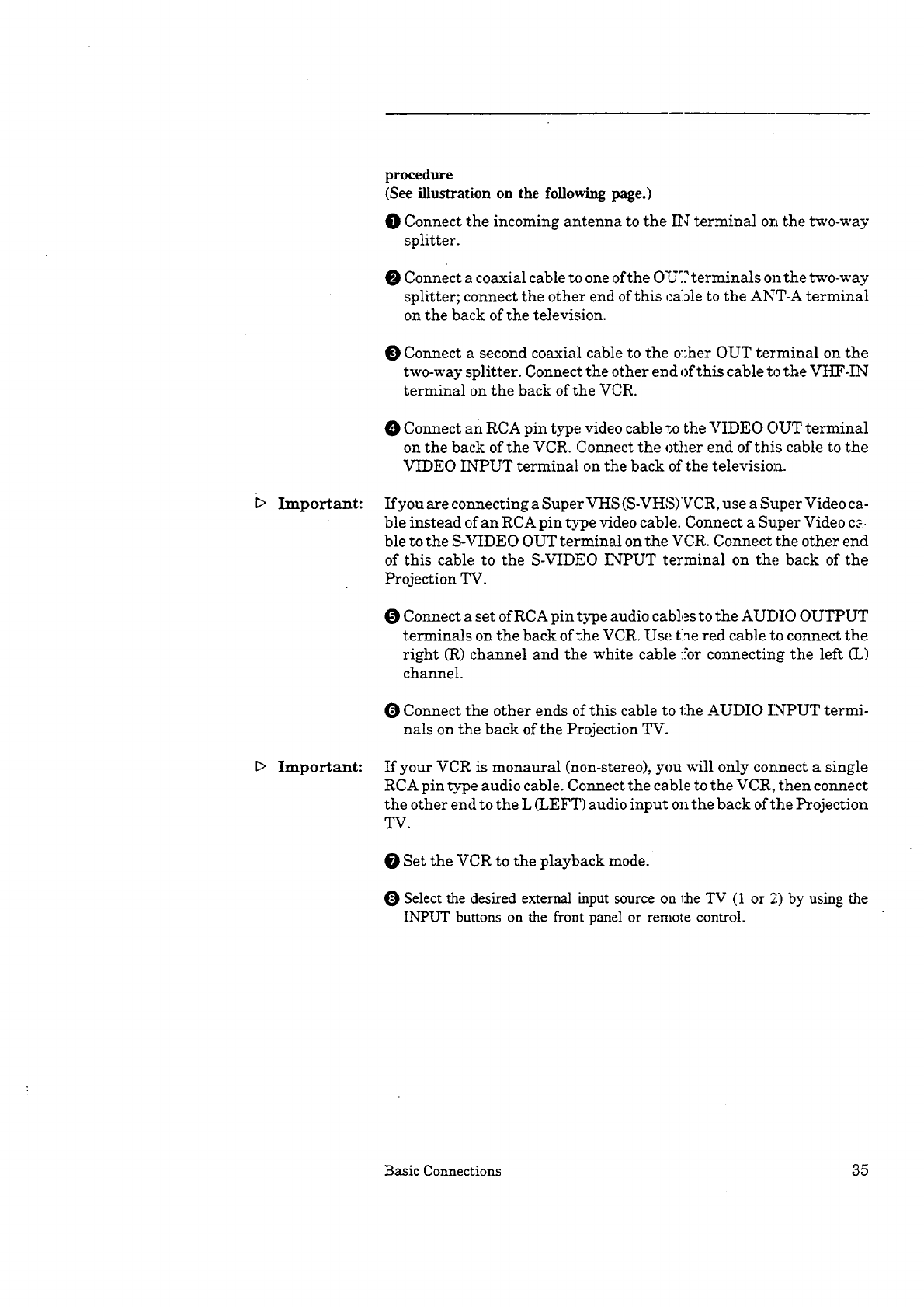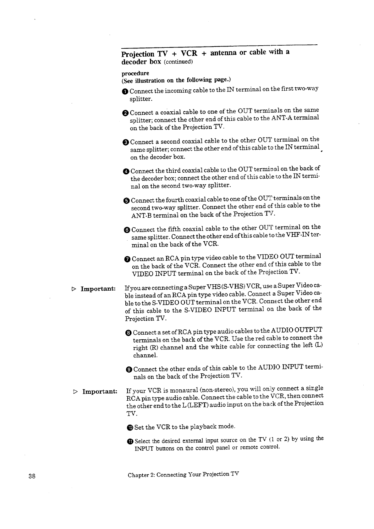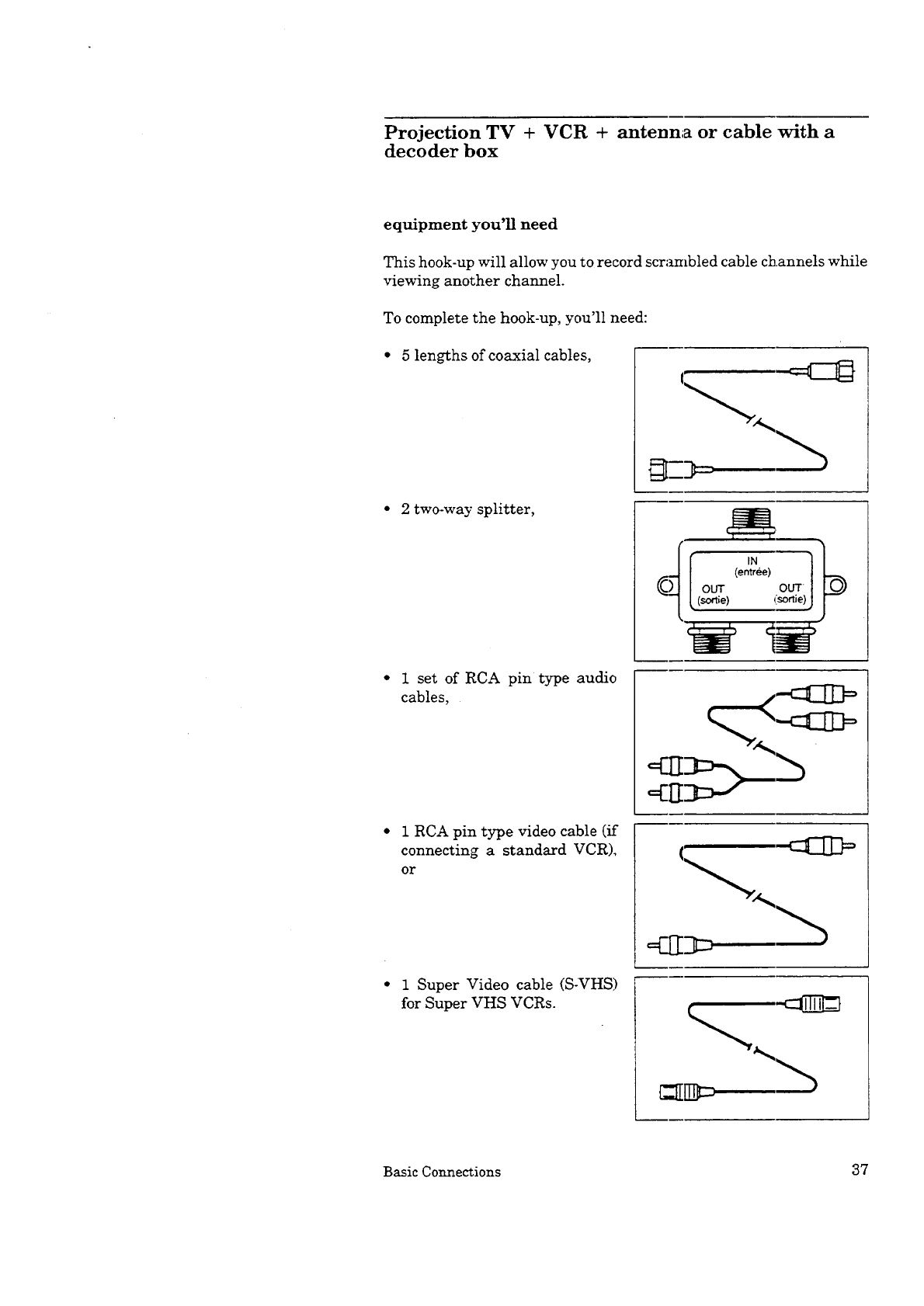 Projecuon TV + VCR + antenna or cable with a decoder box ................ 37