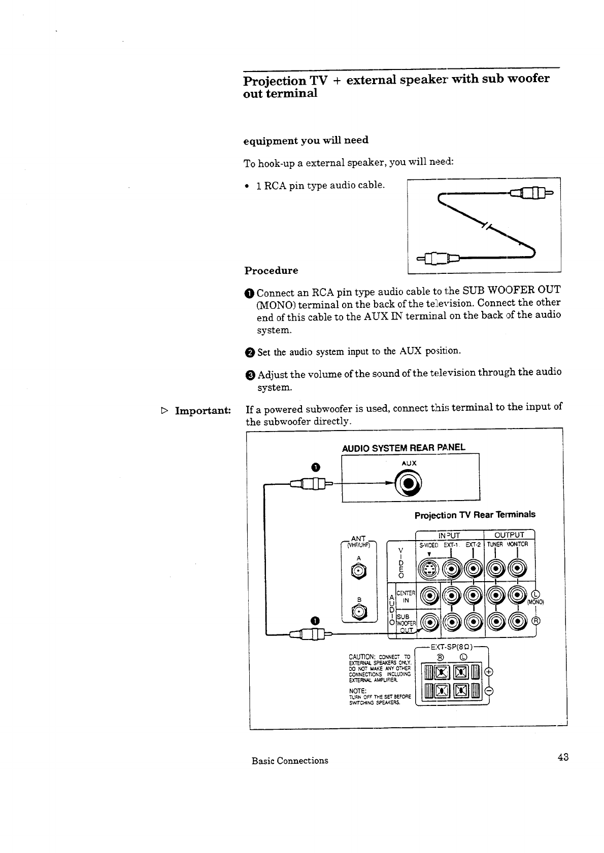 Projecuon TV + external speaker with subwoofer out termfiaal ................ 43