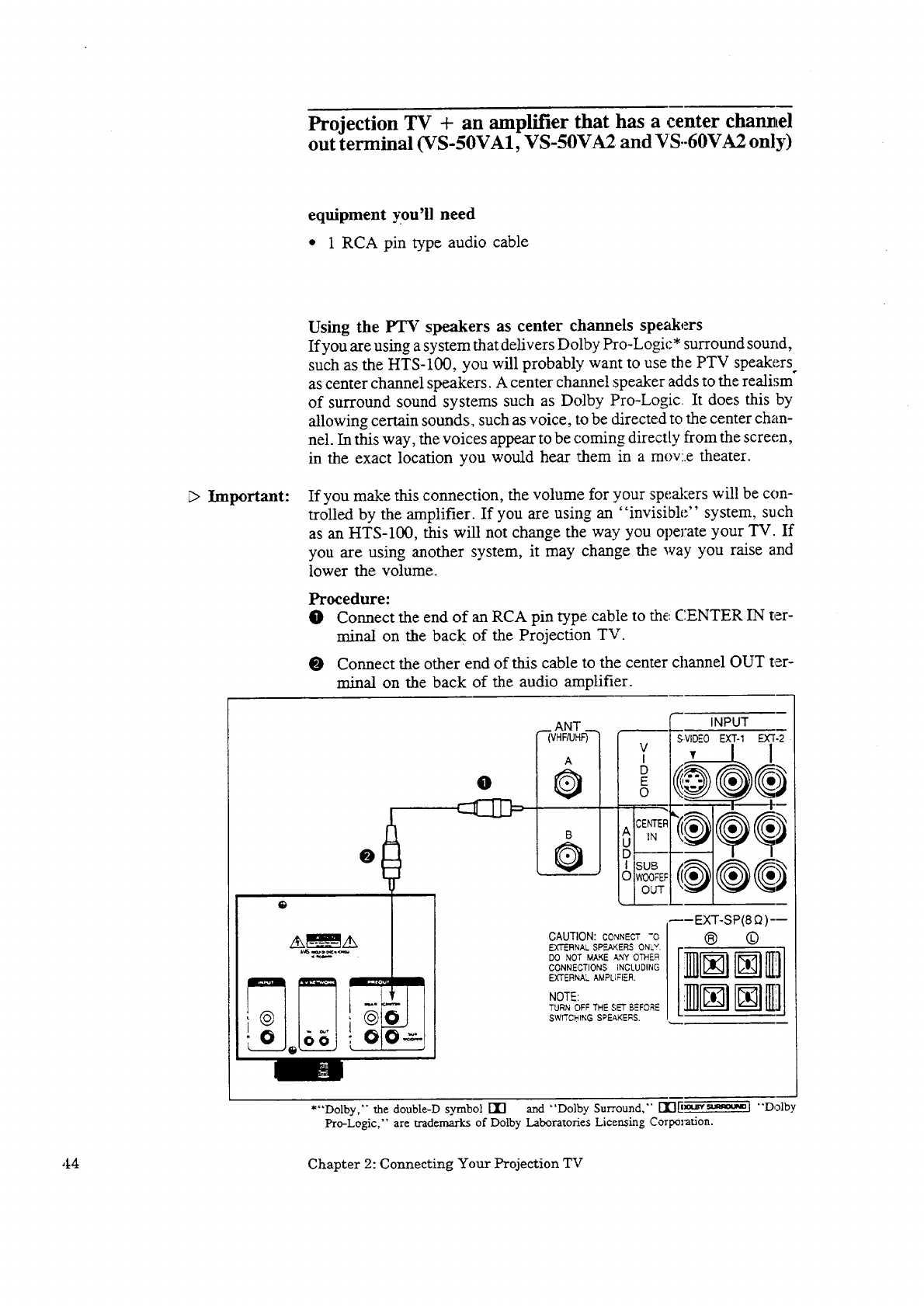 Projecuon TV + an amplifier that has a center channel O[.EC terminal