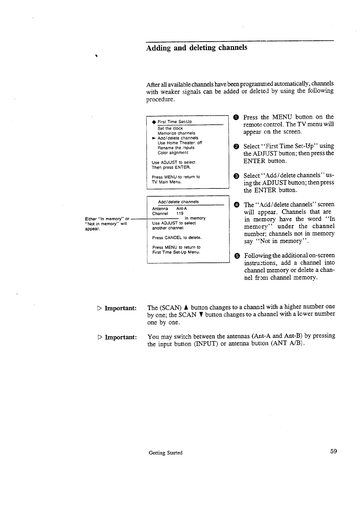 Adding and deleting channels ................................. ,59
