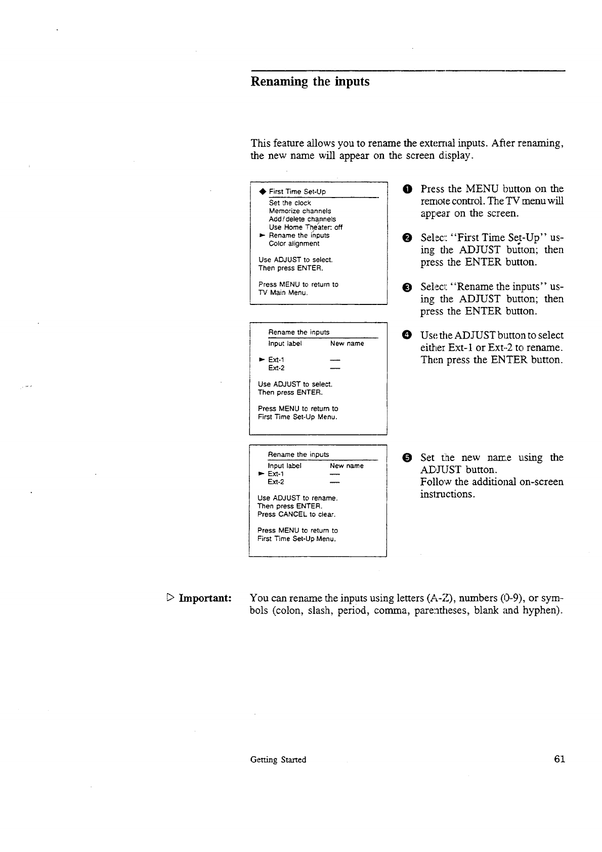 Renaming the inputs ........................................... 61