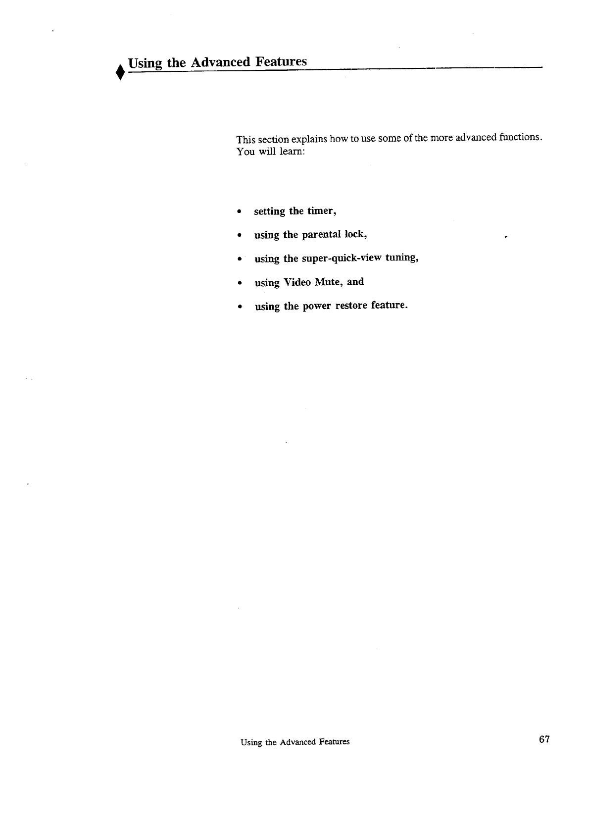 Using the Advanced Features ..................................... 67