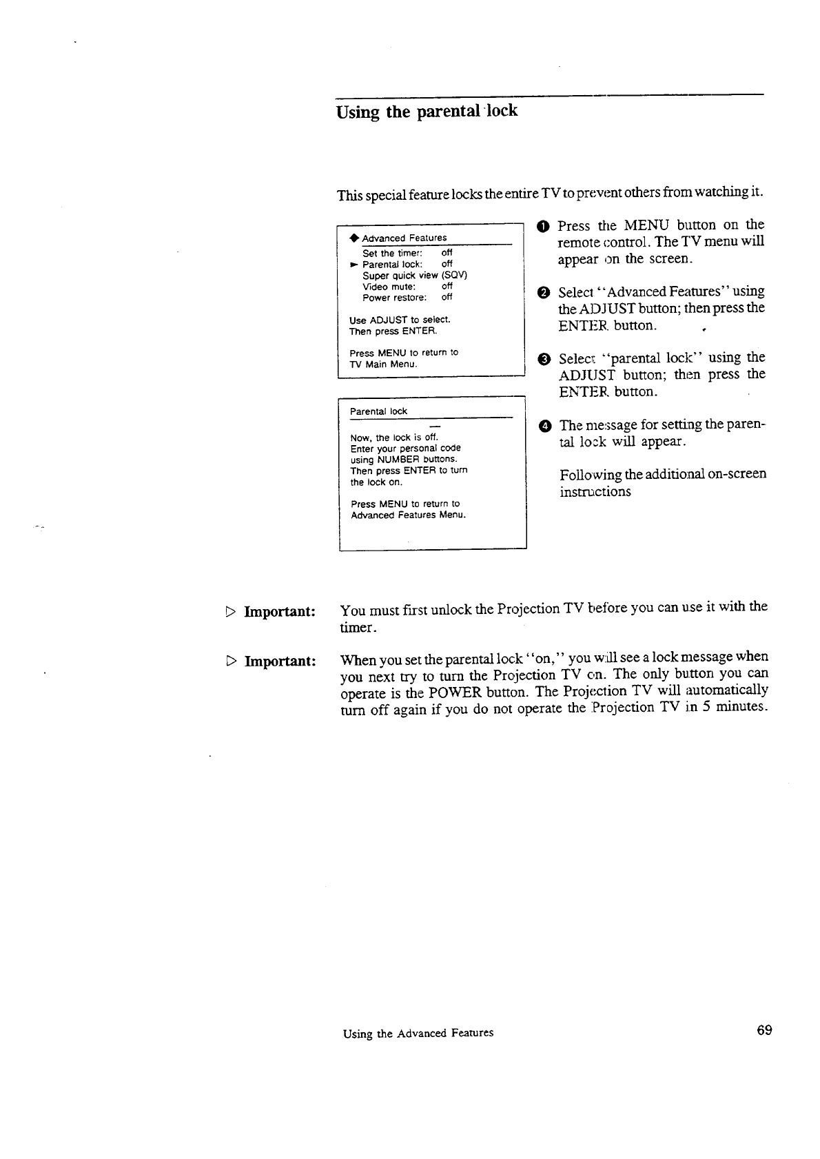 Using ':he parental lock 73