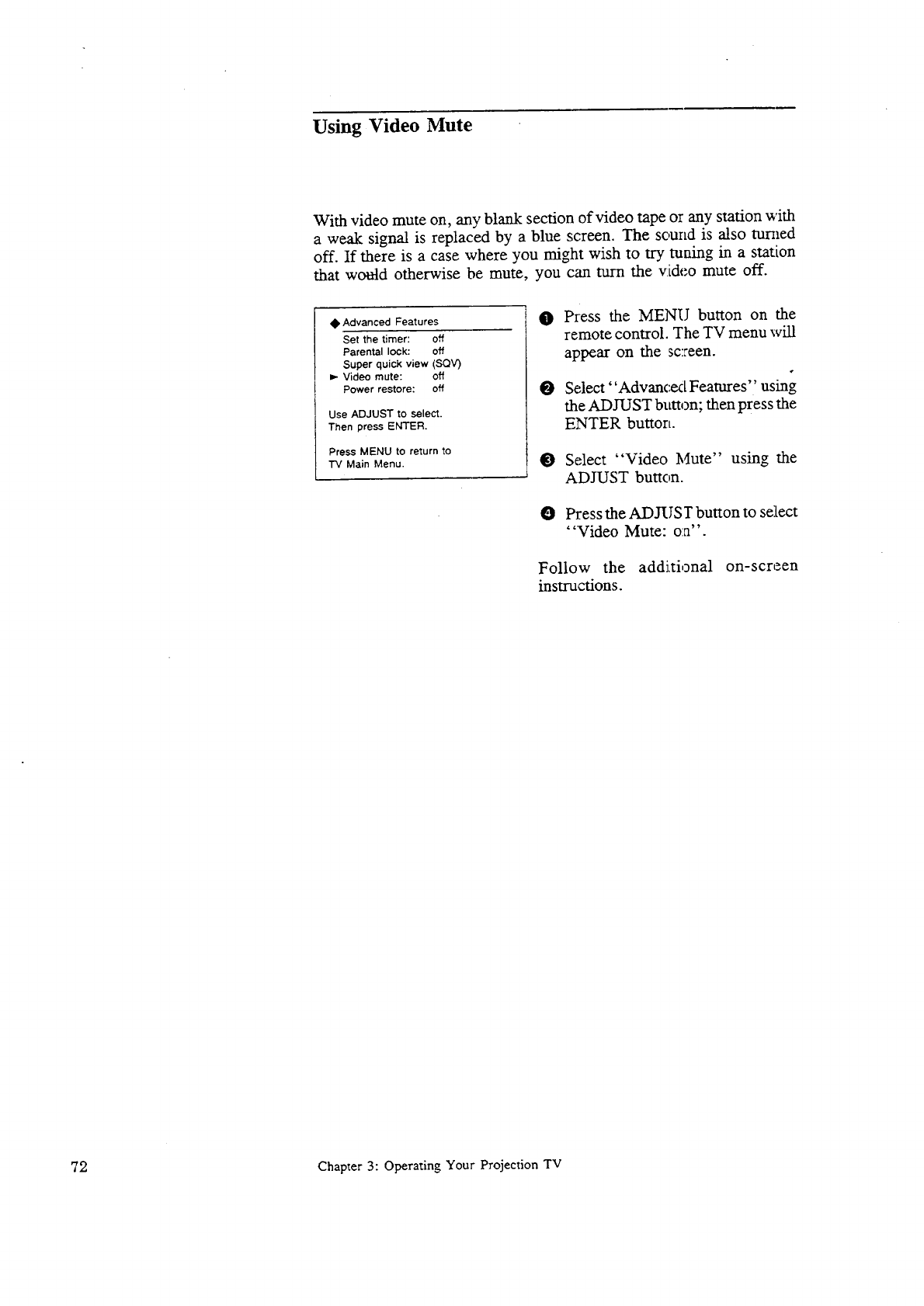 Using Video Mute 72