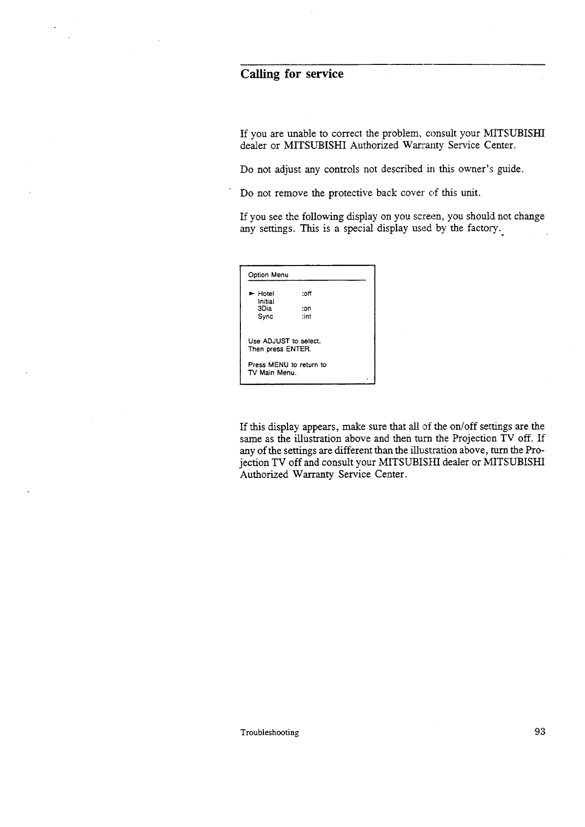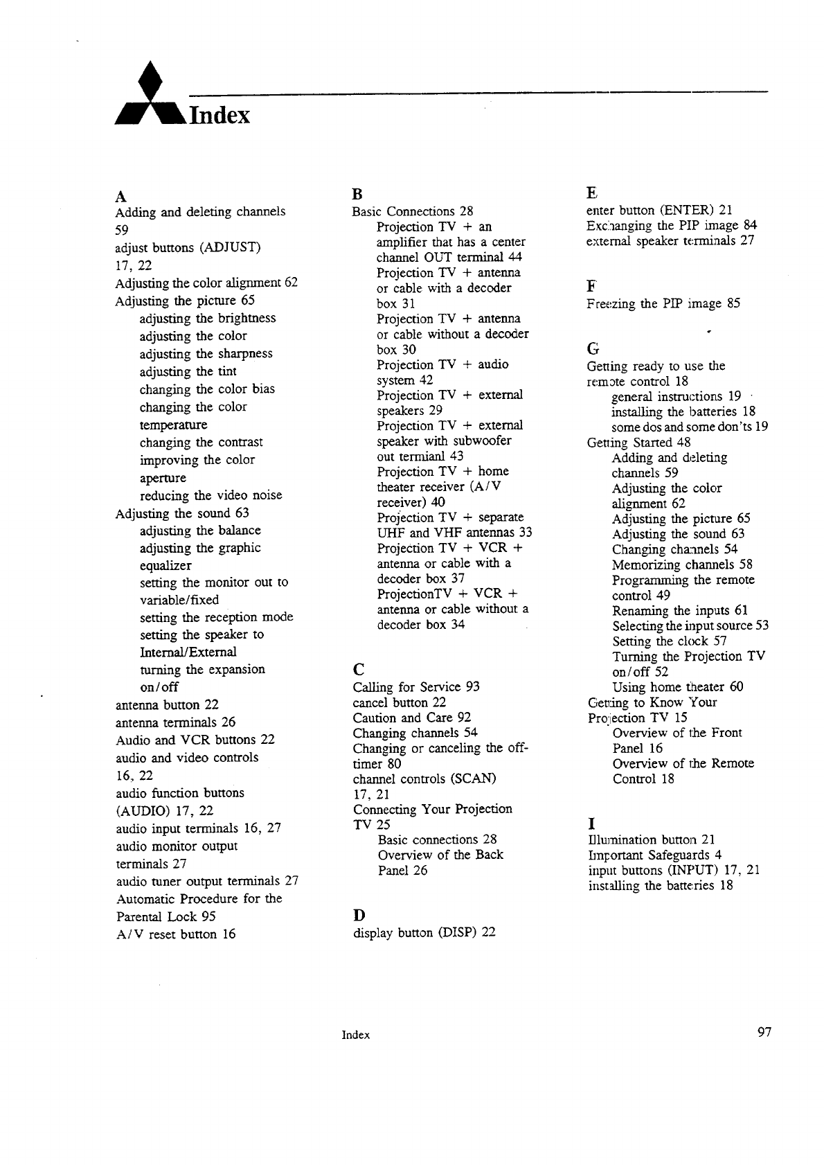 MITSUBISHI Projection/Digital 42 And Above TV Manual 97110159