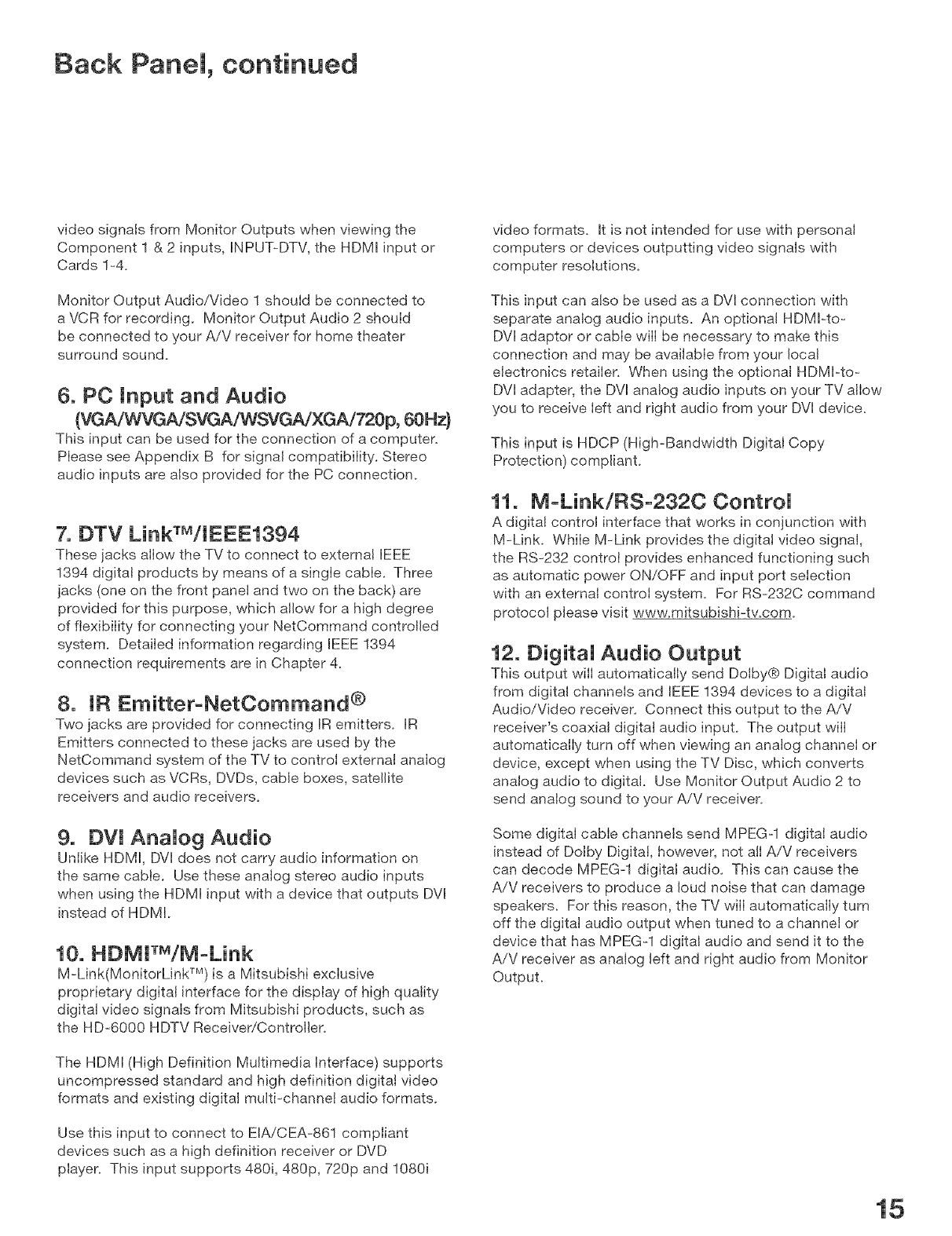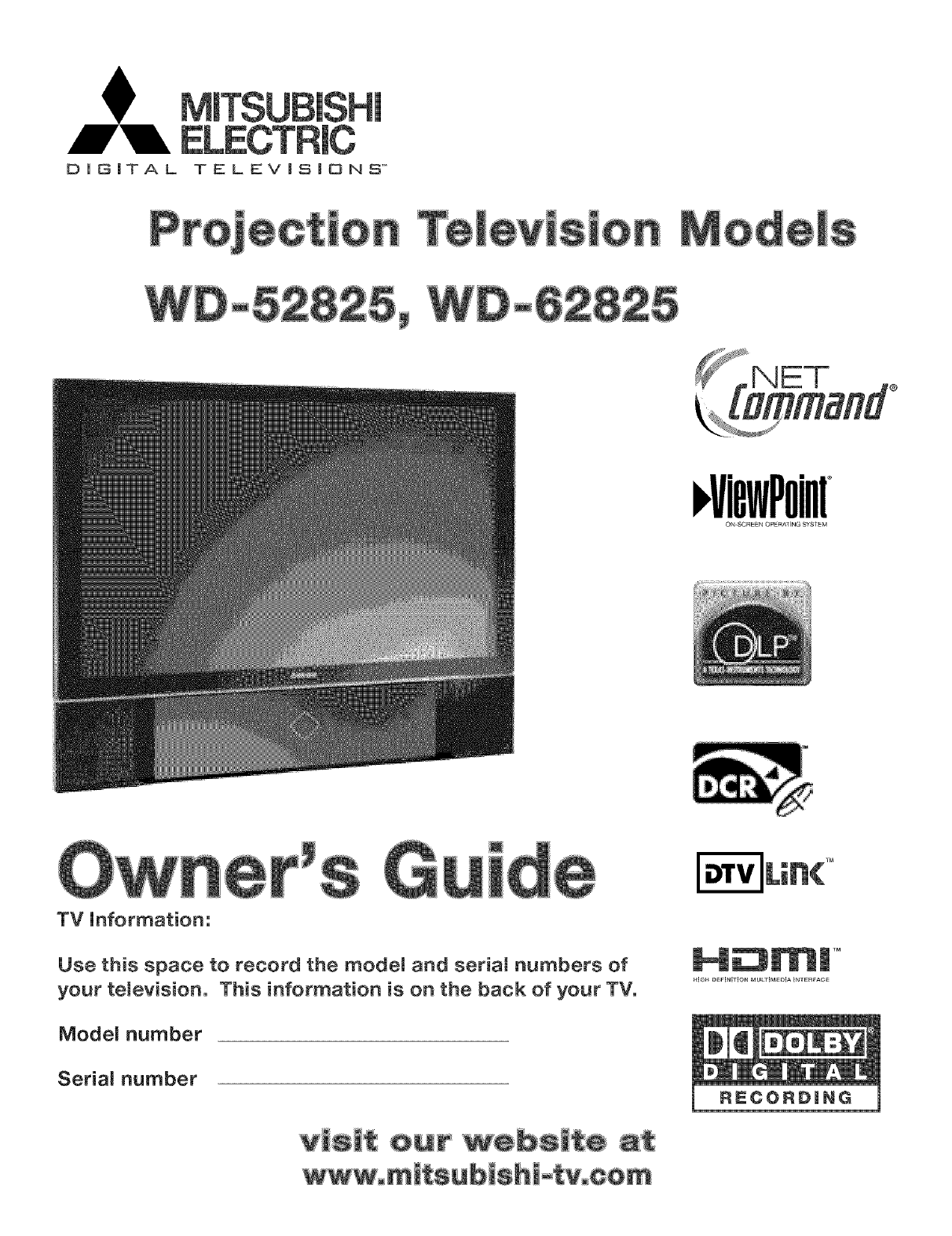 User Manual: MITSUBISHI MITSUBISHI DLP Television Manual MITSUBISHI DLP Television Owner's Manual, MITSUBISHI DLP Television installation guides