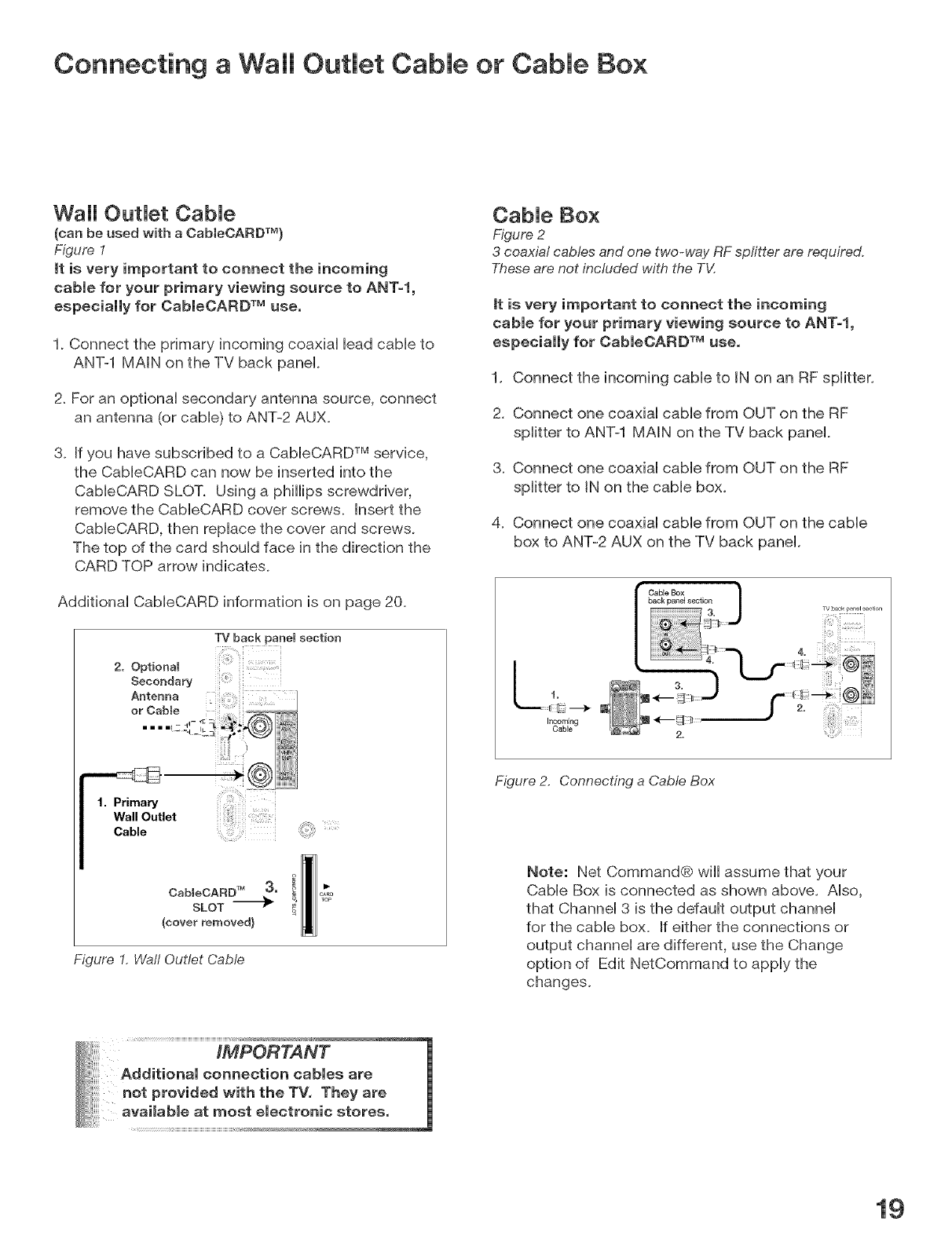 Wall Outlet Cable or Cable Box .................................................................................... 19