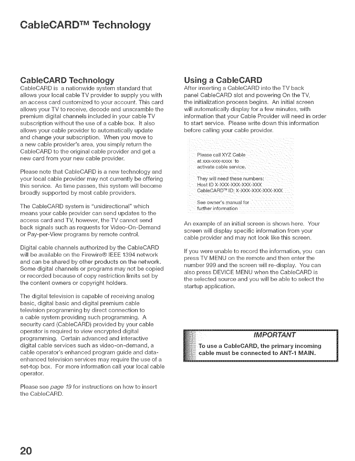CableCARD TM Technology ........................................................................................... 20