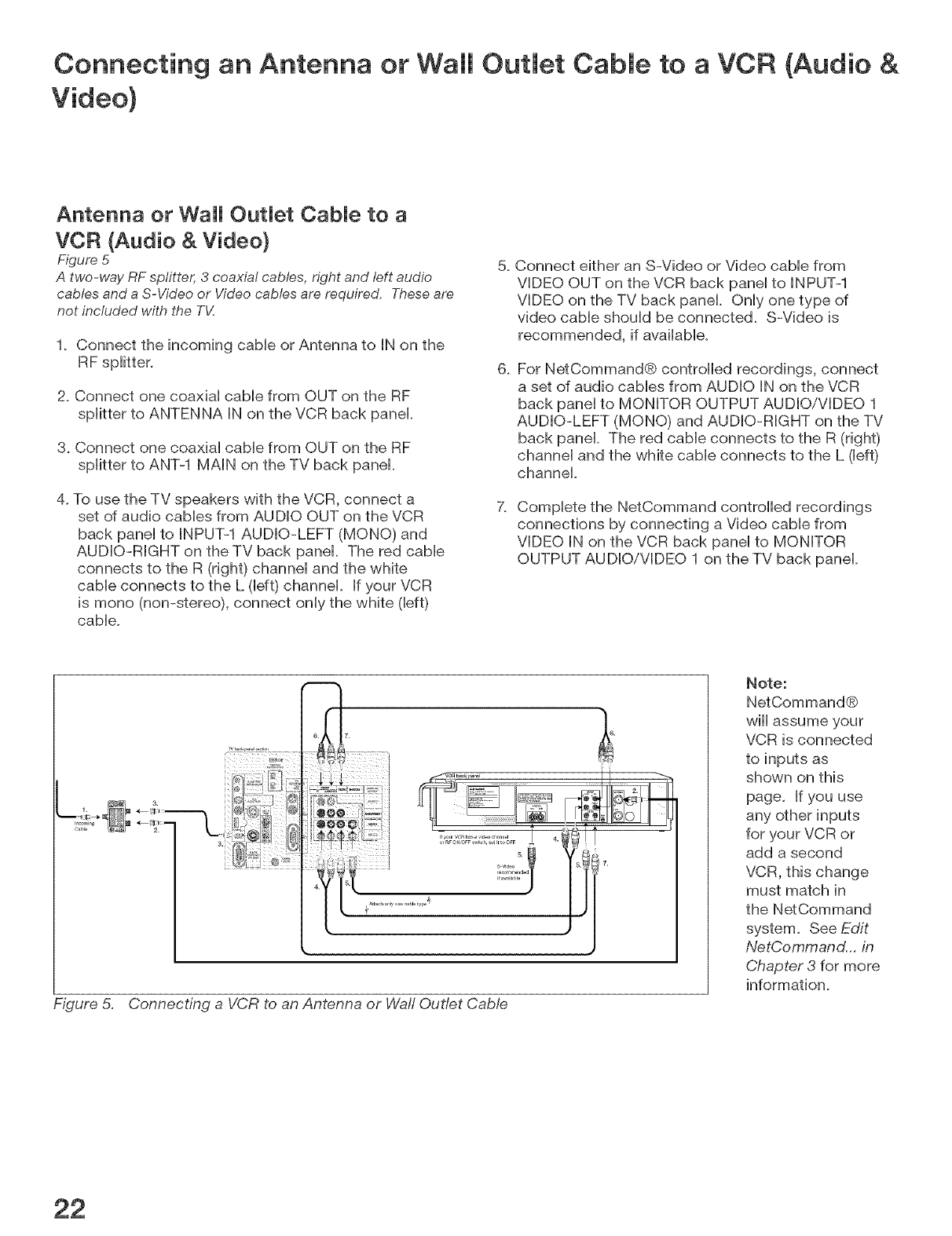 Antenna or Wall Outlet Cable to a VCR (Audio & Video) .............................................. 22