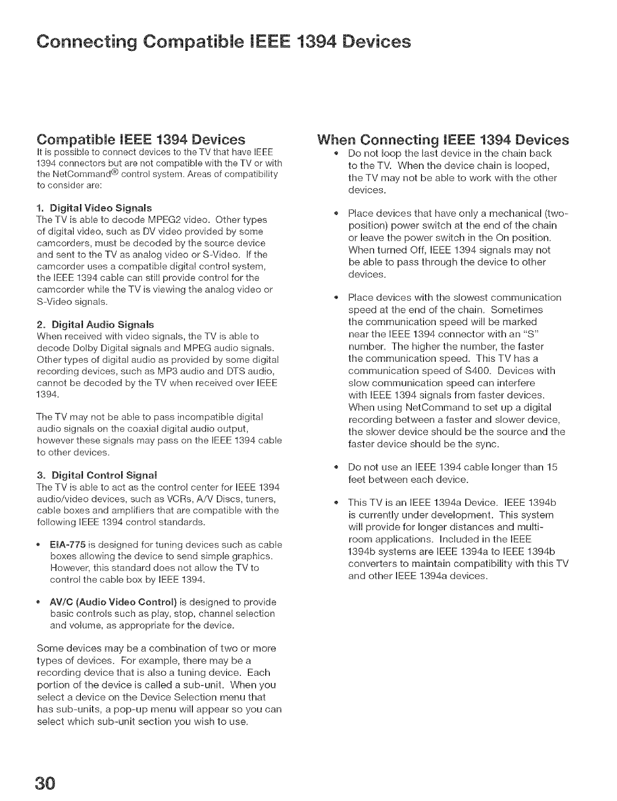 be compatible under IEEE 1394 AV/C and HAVi software standards with products produced by any other manufacturer.