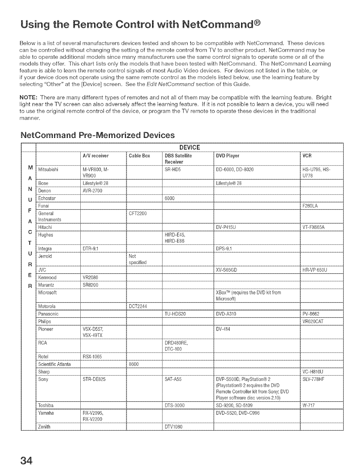 Using the Remote Control wkh NetCommand® .......................................................... 34