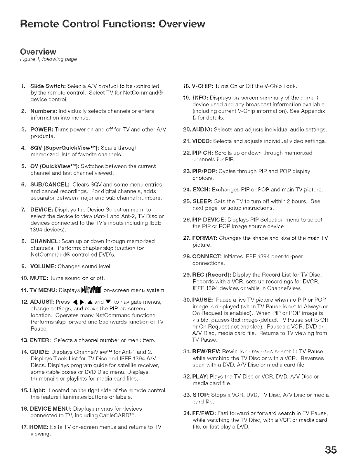 Remote Control Functions: Overview ........................................................................... 35