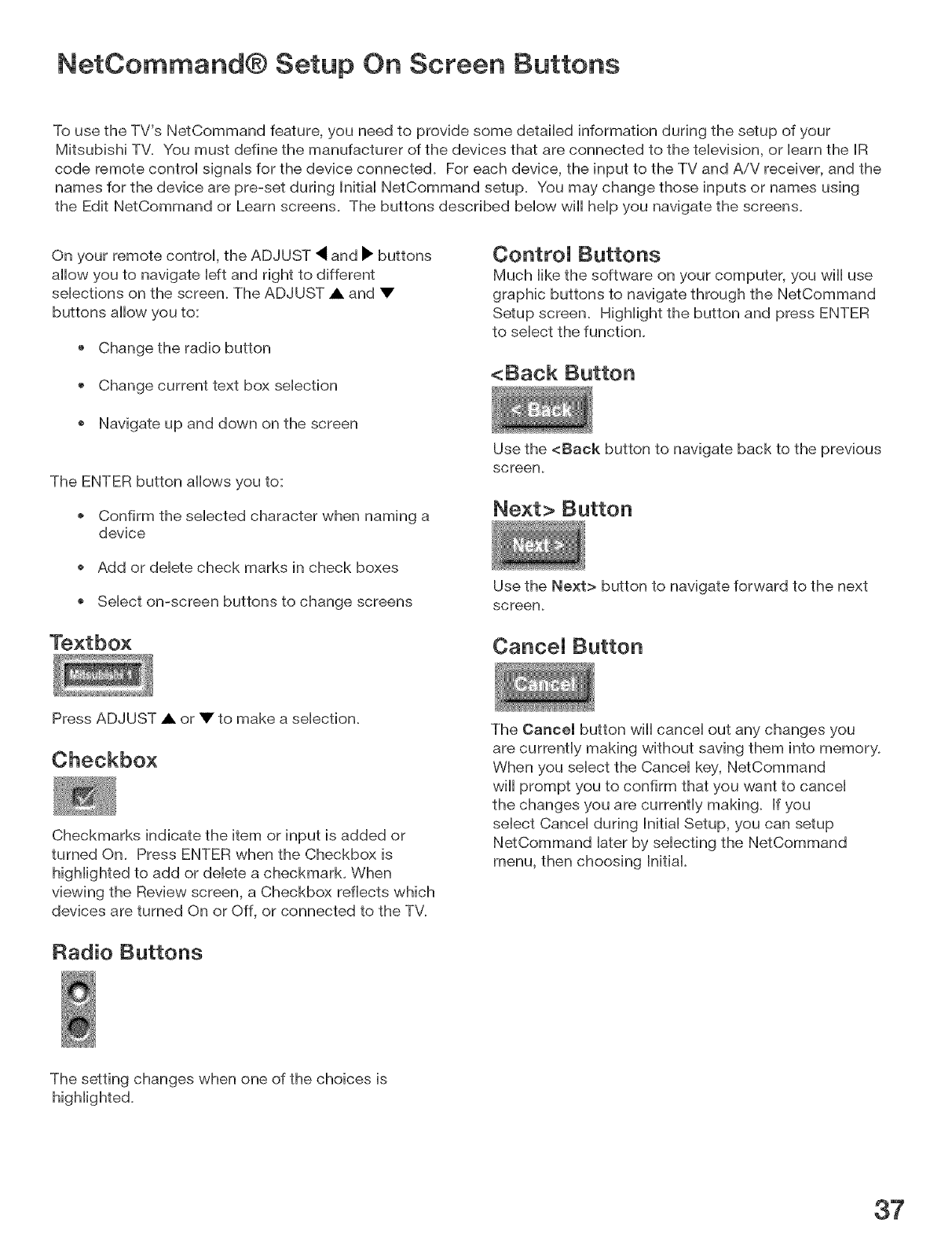 NetCommand® OnScreen Buttons ............................................................................. 37