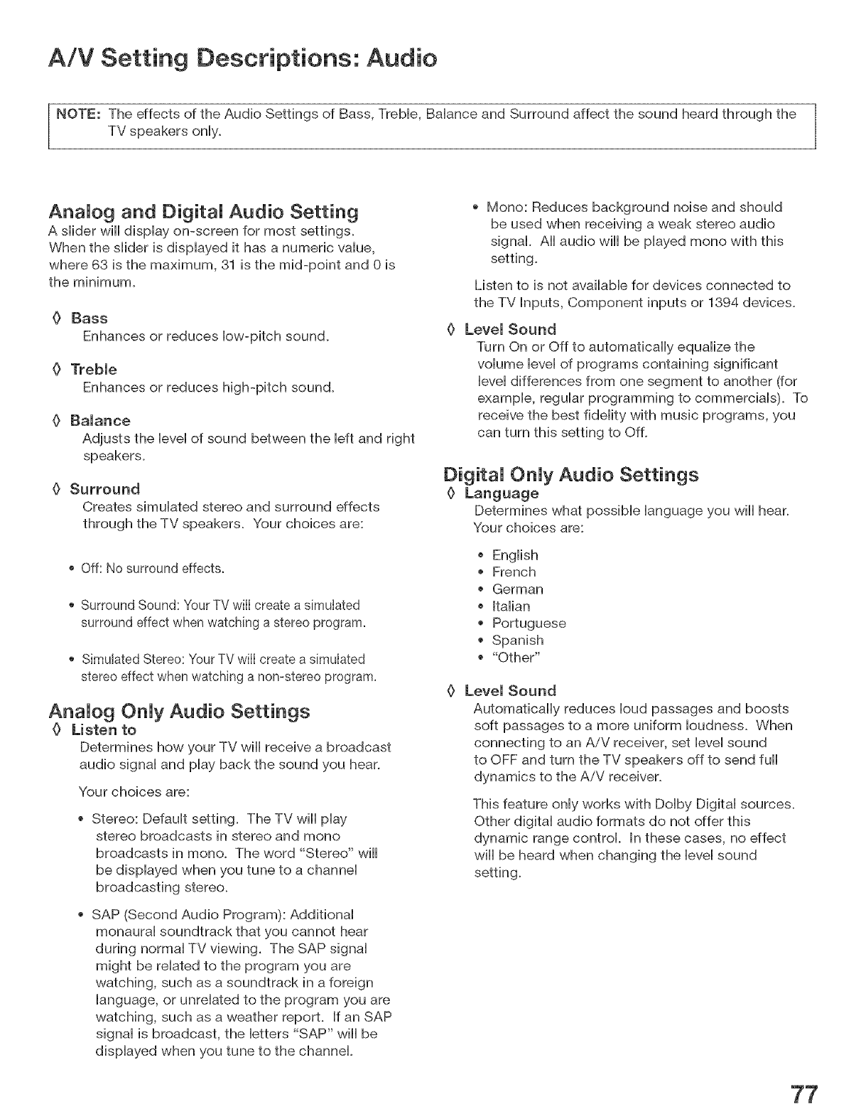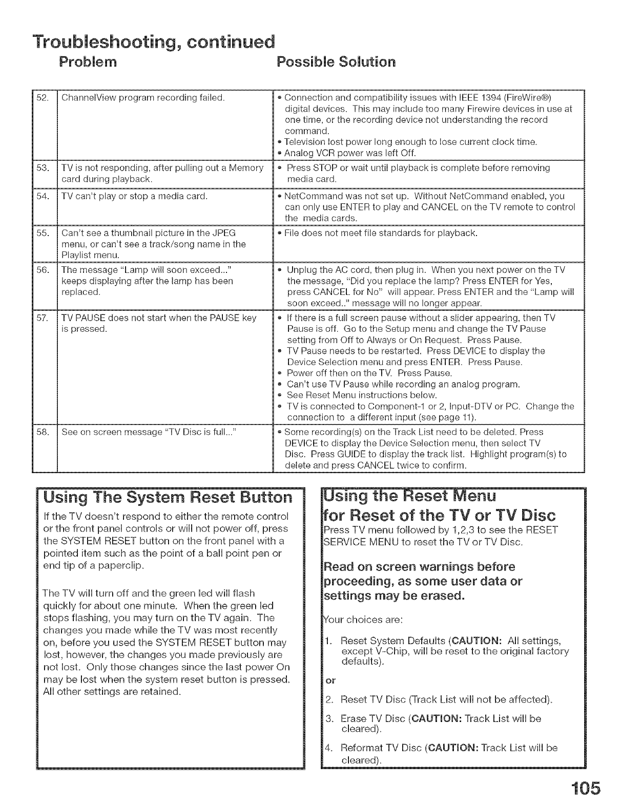 customer control adjustment. If the problem persists please arrange for warranty service.