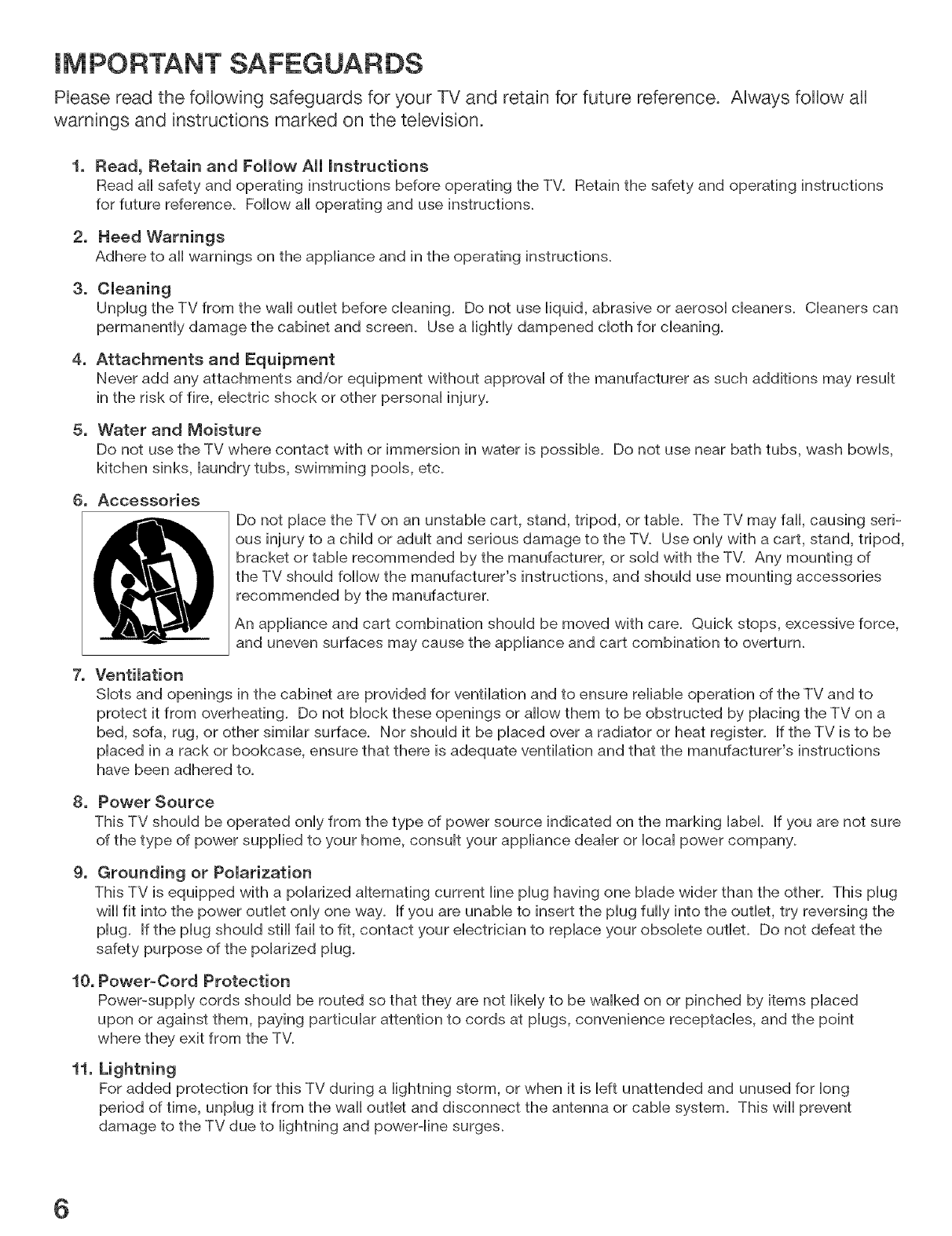 moved whiUe it is turned on. Power off your TV before moving it.