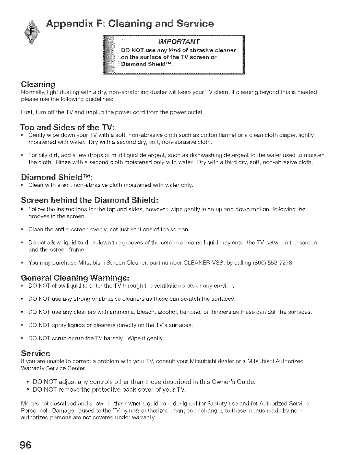 MITSUBISHI DLP Television Manual L0412114