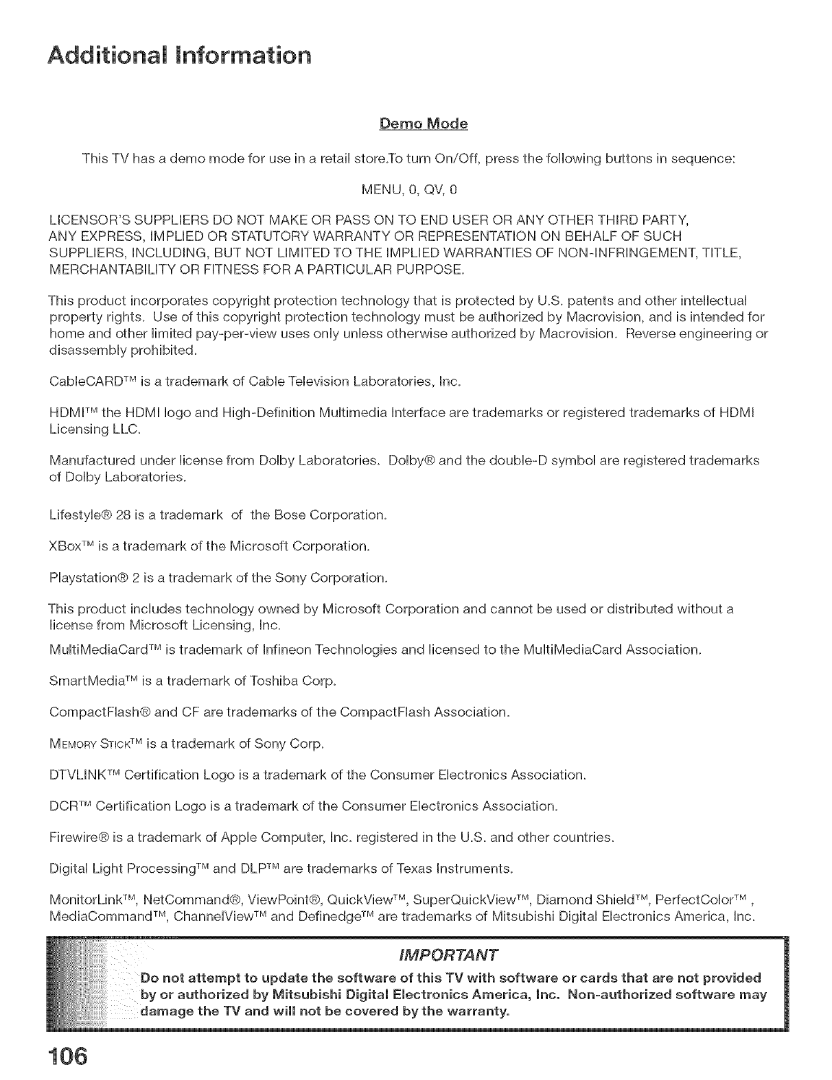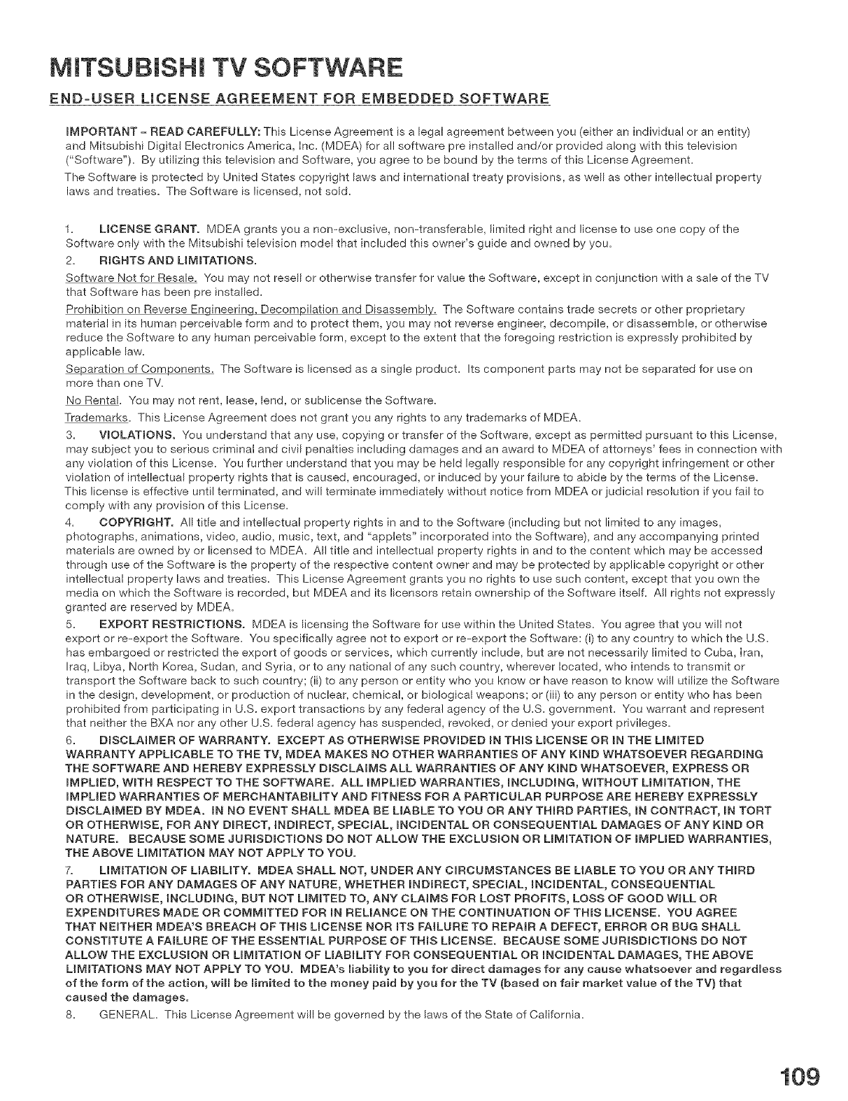b. Embedded Software. MDEA warrants that all software incorporated into this television set (the "Embedded Software")