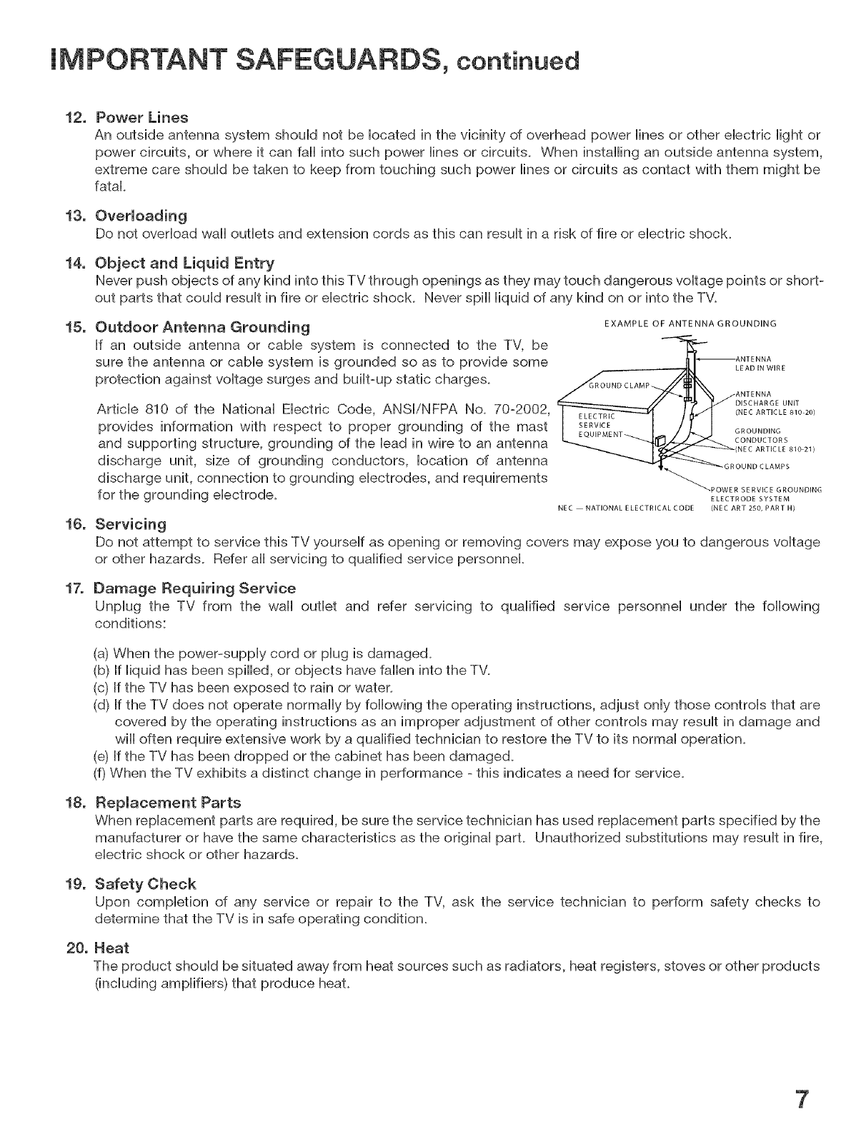 ATTENTION TO ARTICLE 820-40 OF THE NEC THAT PROVIDES GUIDELINES FOR THE PROPER GROUNDING AND,