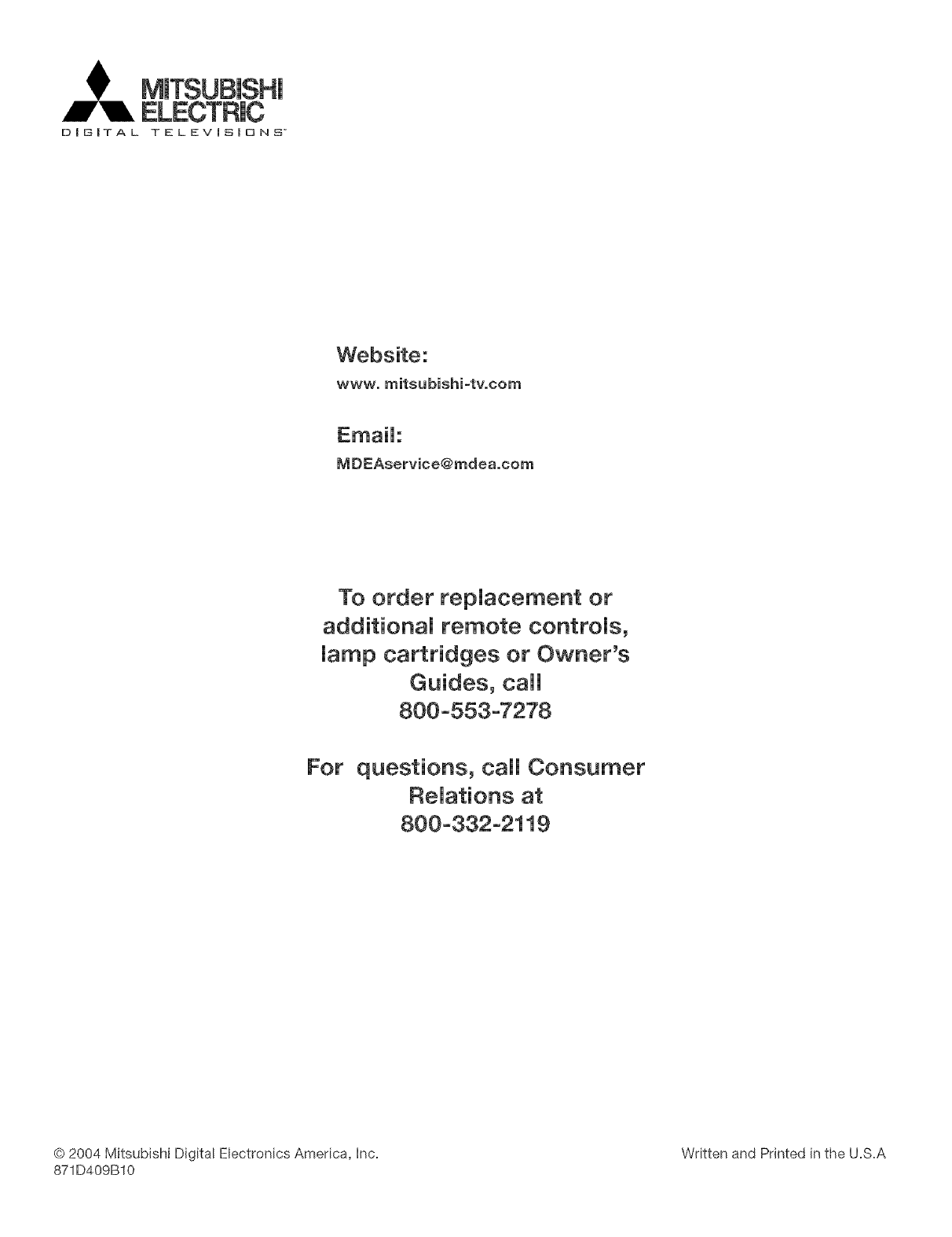 632004 Mitsubishi Digital Electronics America, hc. Written and Printed in the U.S.A