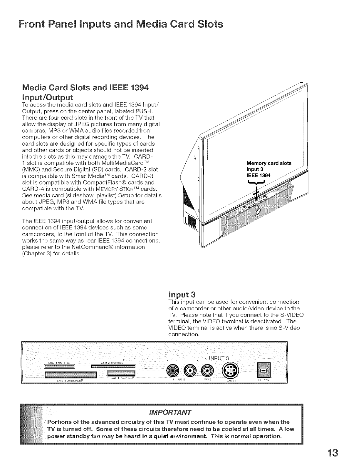 Portions of the advanced circuitry of this TV must continue to operate even when the TV is turned