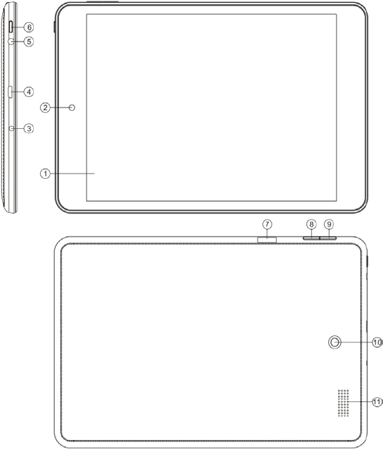 7. Micro SD/TF card slot - Input the micro SD/TF card and read.