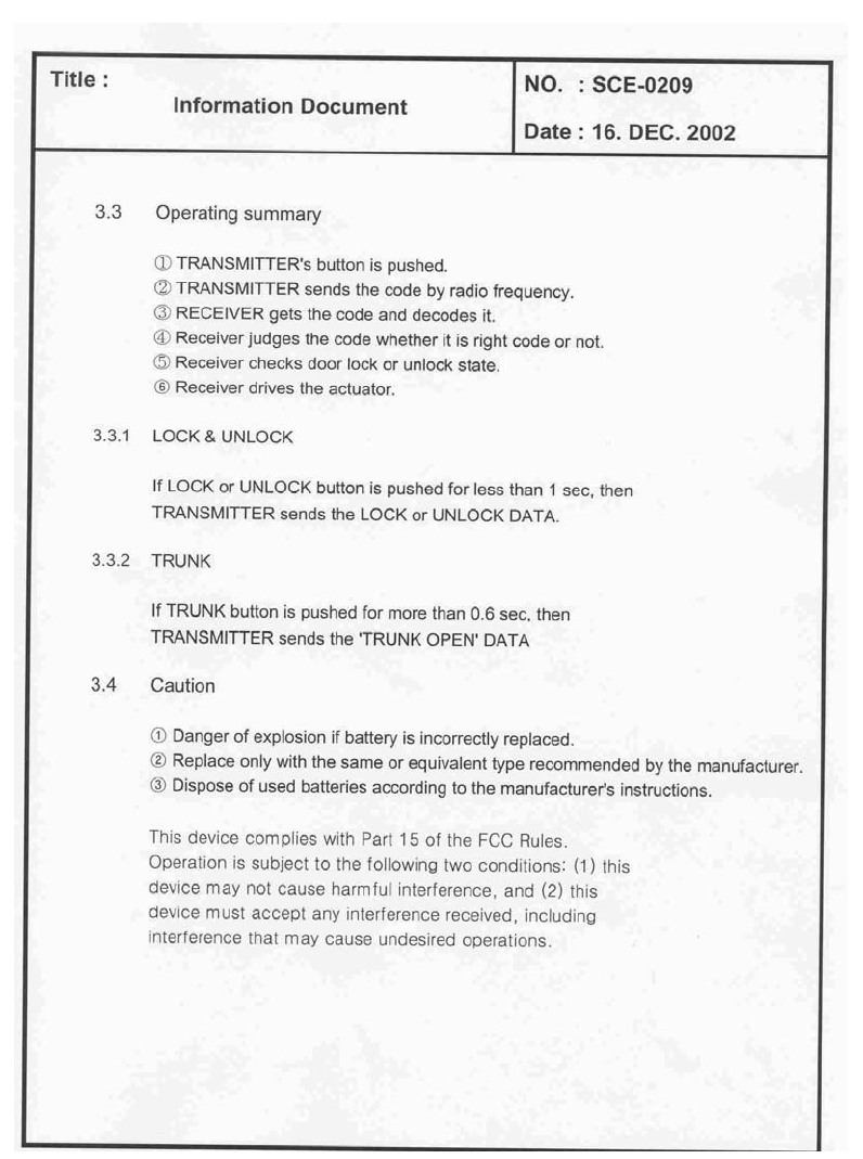 Daedong Co. Ltd. Remote Keyless Entry & ATAS System 297495