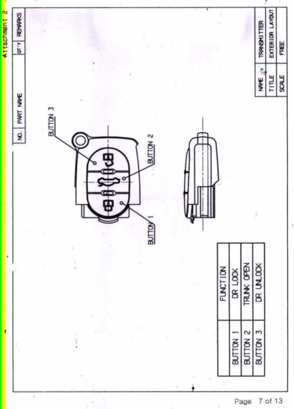 Daedong Co. Ltd. KEYLESS ENTRY TRANSMITTER