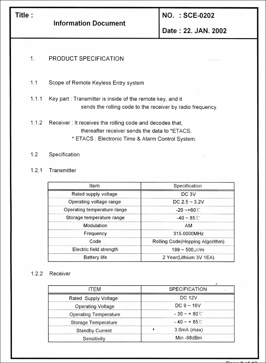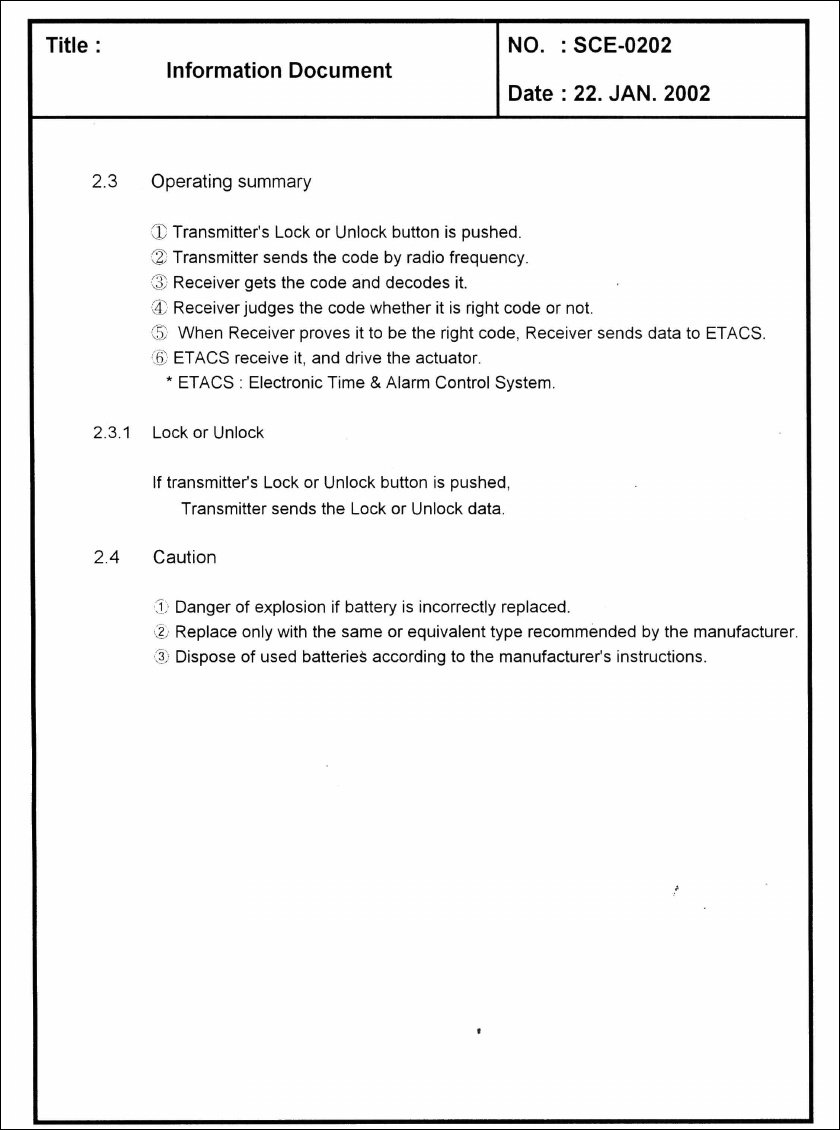 Daedong Co. Ltd. Remote Keyless Entry System NYOSKS 005Tx manual