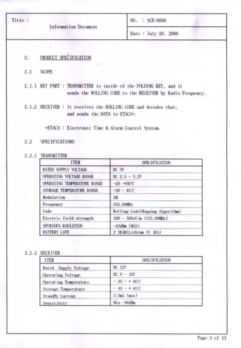 Daedong Co. Ltd. KEYLESS ENTRY SYSTEM