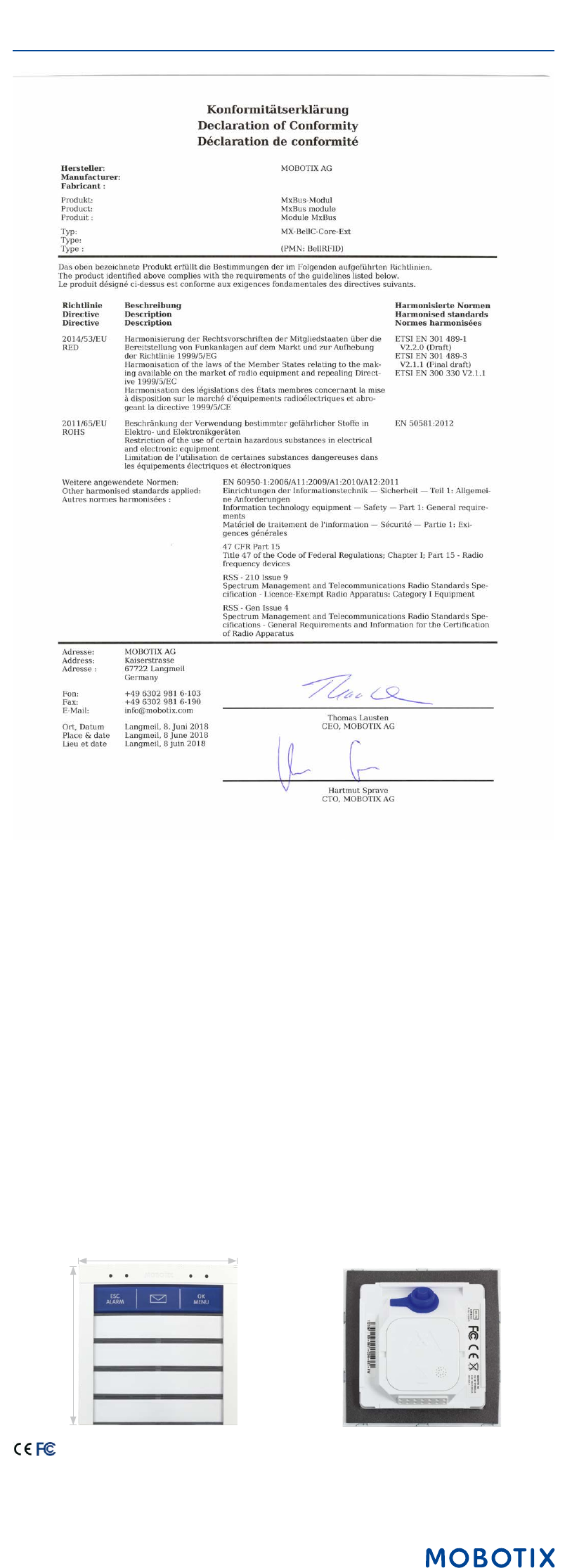 • The MOBOTIX BellRFID is only to be used in the original frames of the IP Video Door Station.