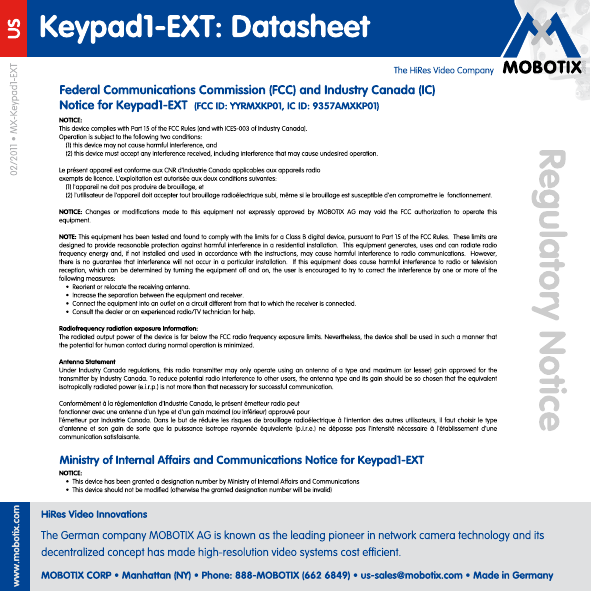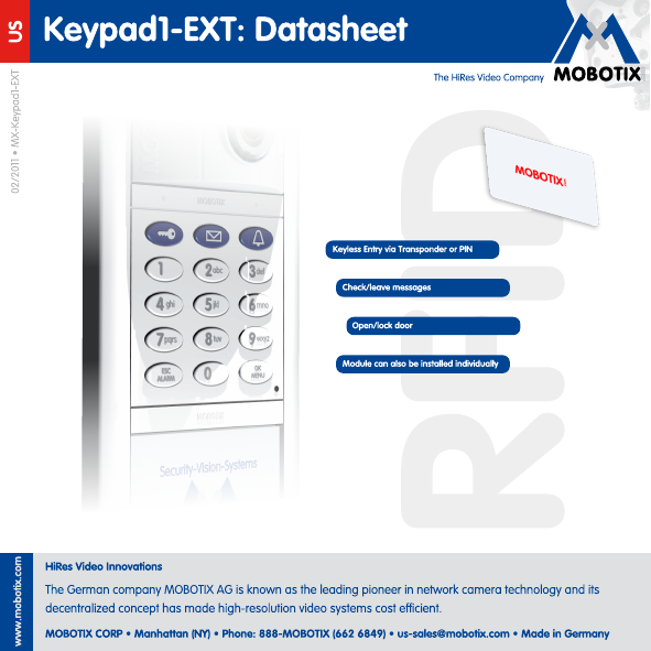MOBOTIX MXKP01 Access control system User Manual