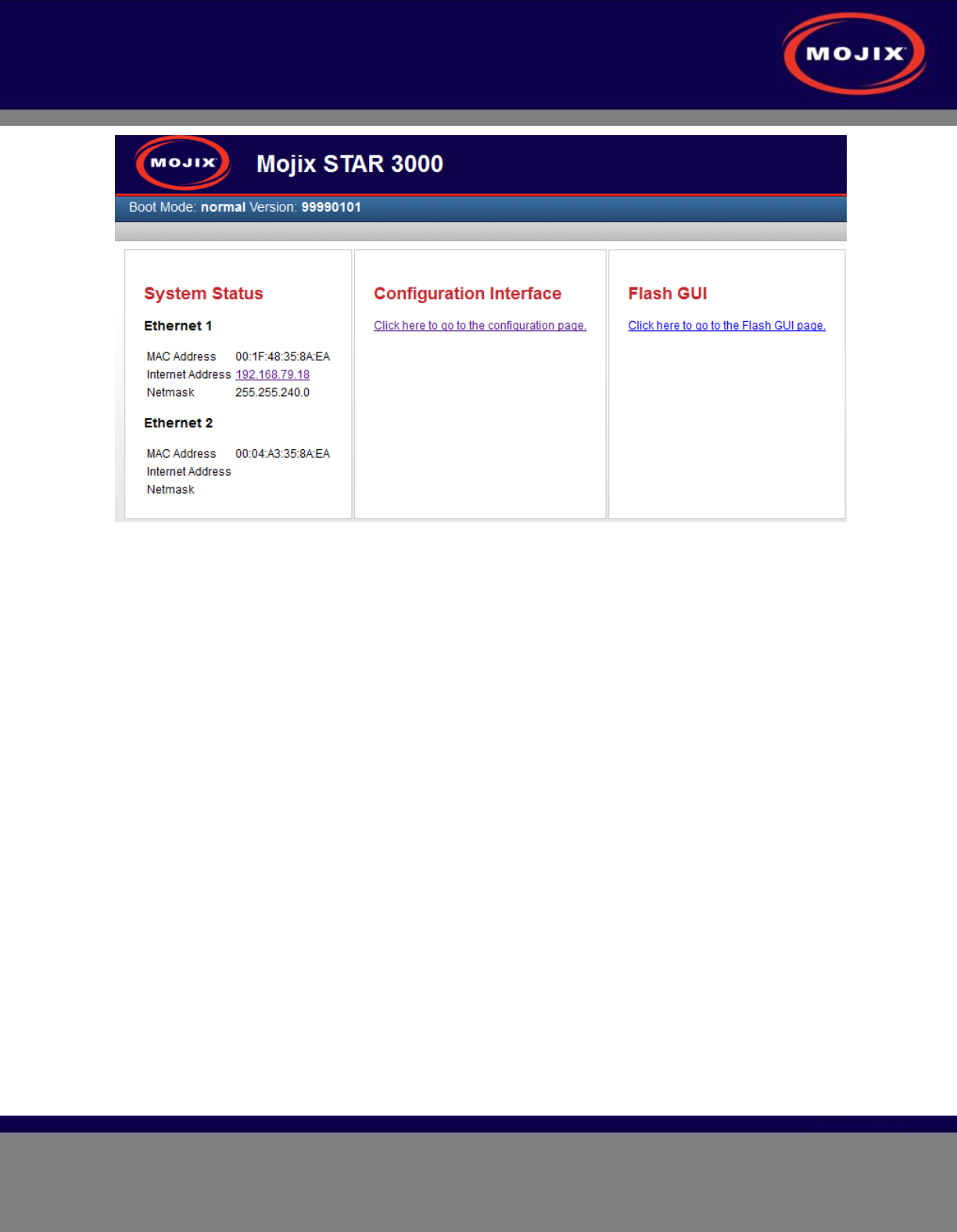 3. Click on the Configuration Interface link and the user is presented with a web page as depicted in