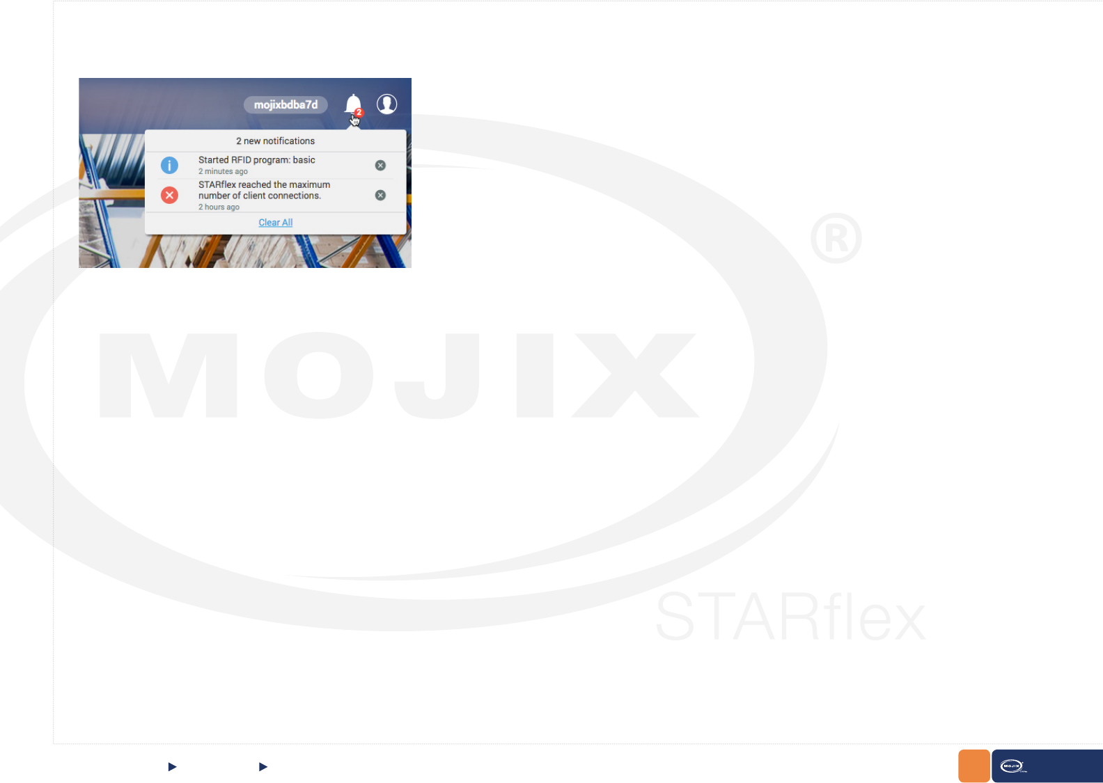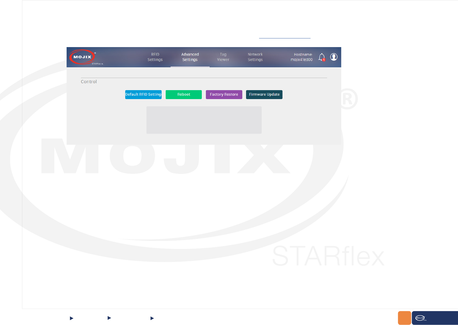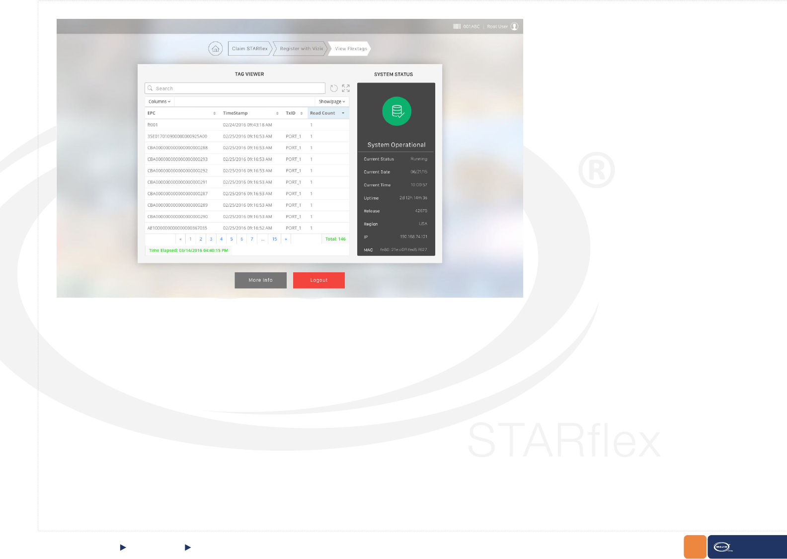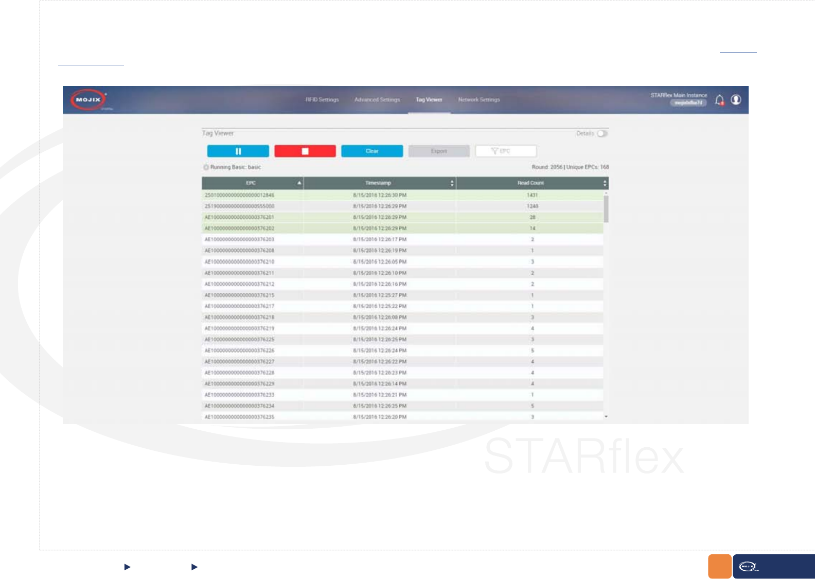 js web framework. Out-of-the-box the reader connects to ViZix.Mojix.com, enabling users to have their STARex up and sending tag data into the cloud in