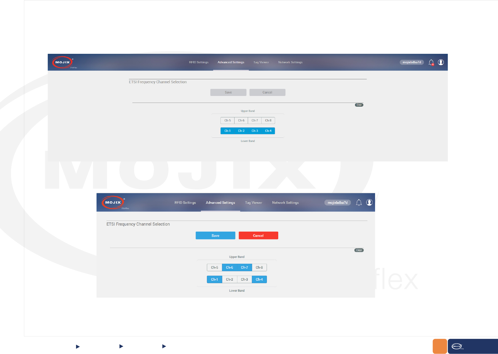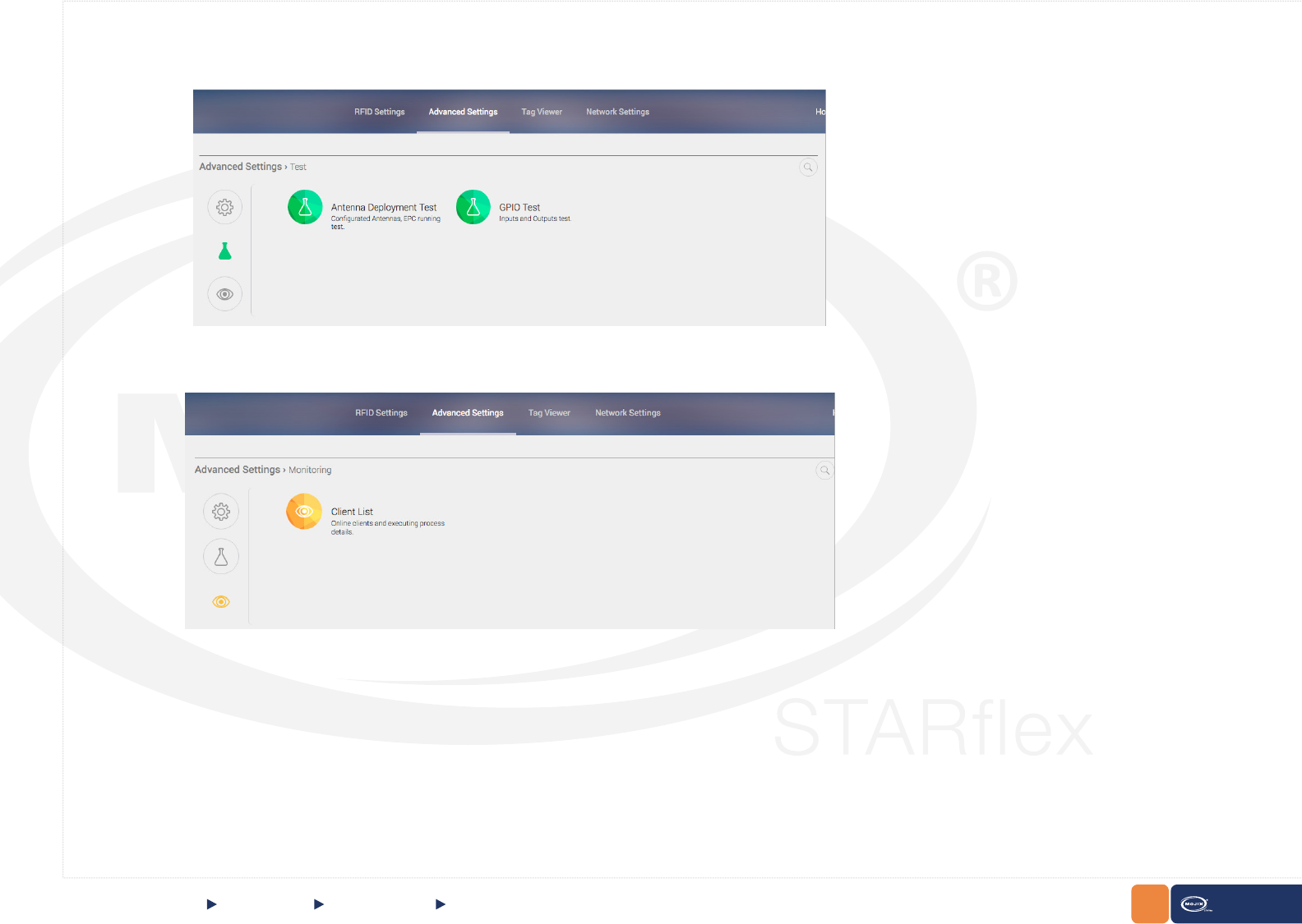 The RFID settings section allows the user to view and congure different Antennas that are associated to the STARex. These selections include antenna,
