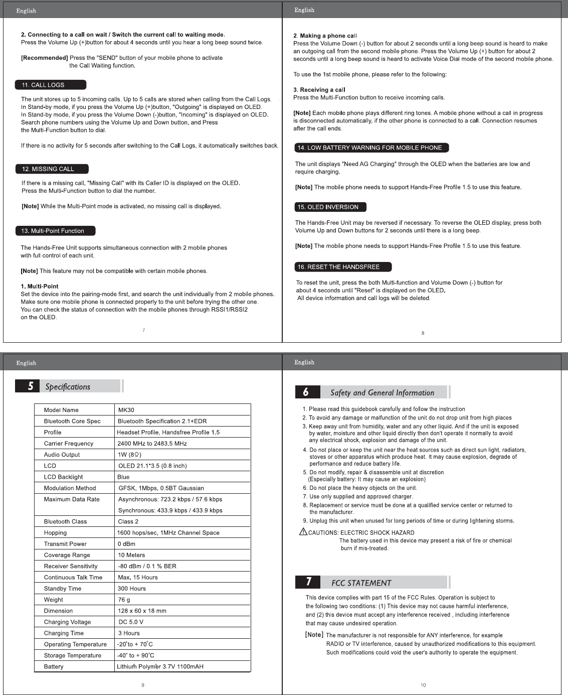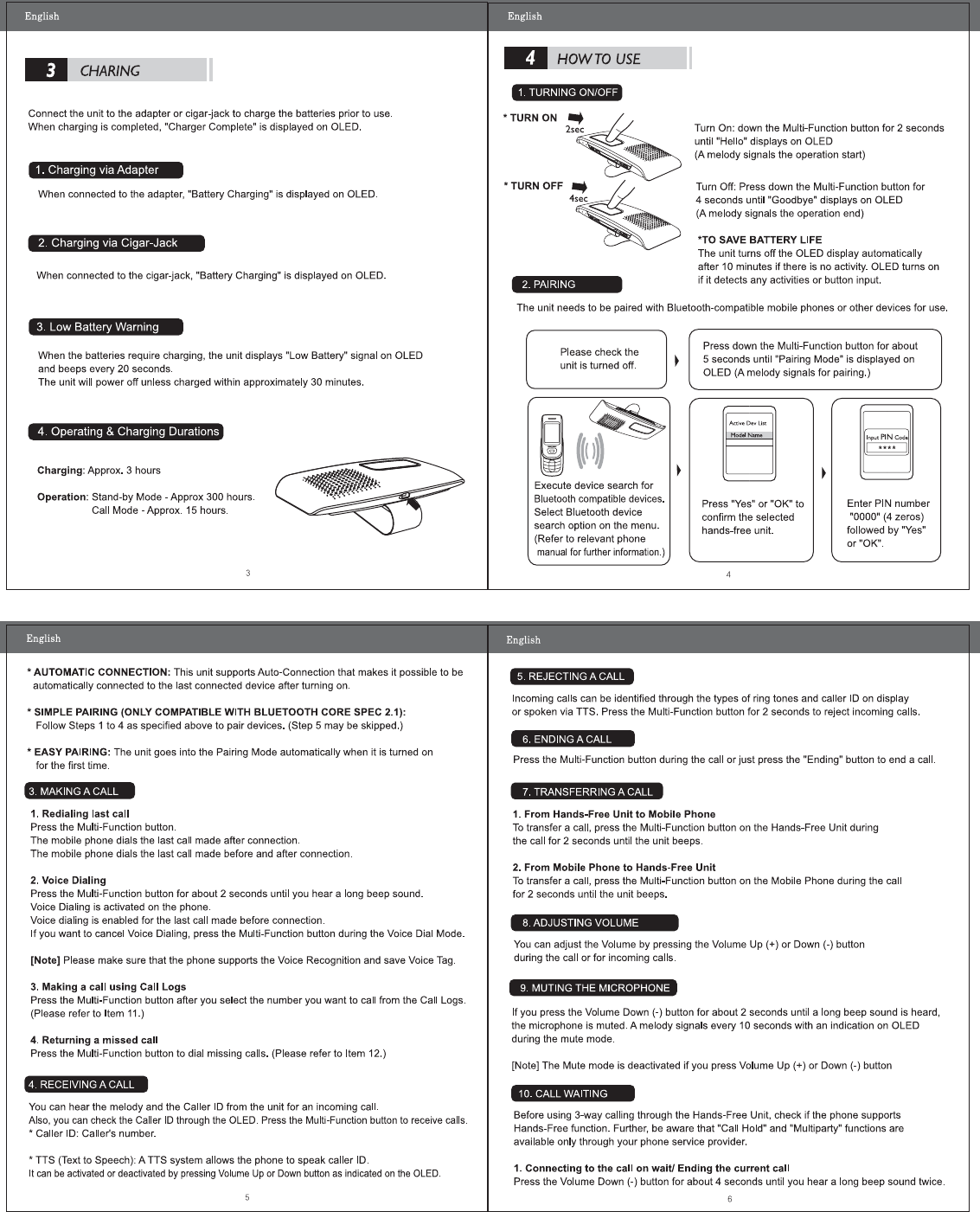 MOVON MK30 Bluetooth Handsfree Carkit User Manual mk30 manual ai