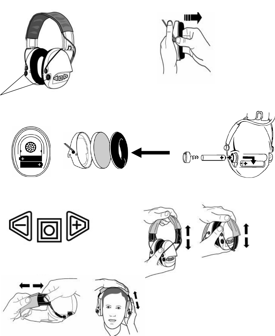 the earmuff and does not have any buttons. To change the batteries, follow the instructions below (figure