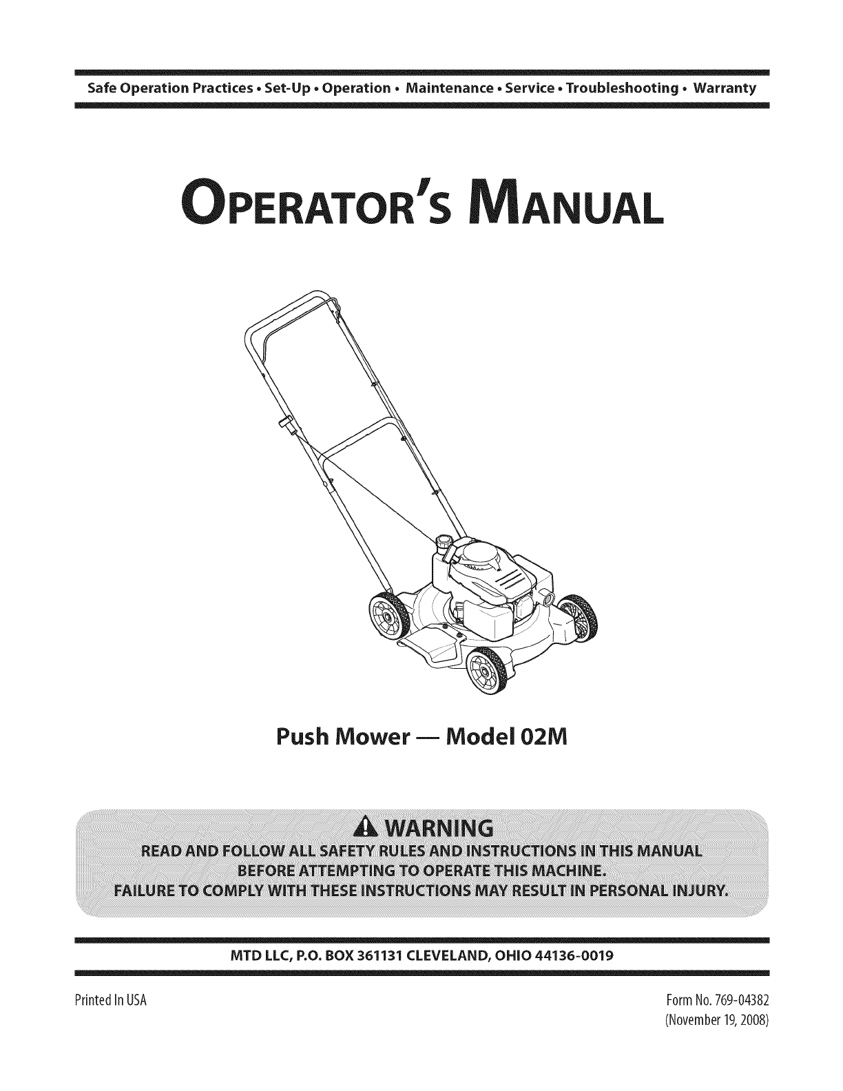 User Manual: MTD 11A-02MG000 11A-02MG000 MTD LAWN MOWER - Manuals and Guides View the owners manual for your MTD LAWN MOWER #11A02MG000. Home:Lawn & Garden Parts:MTD Parts:MTD LAWN MOWER Manual